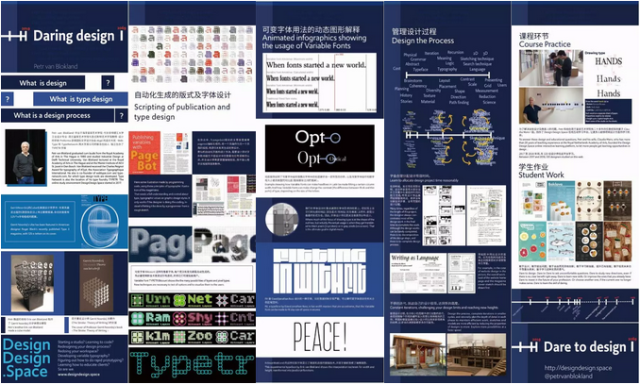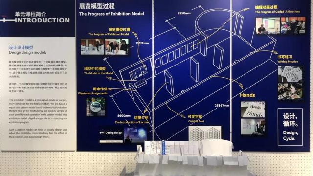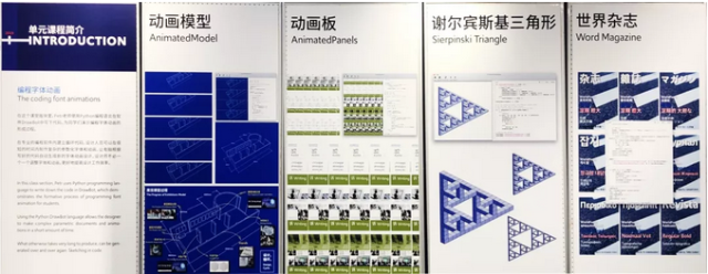 本次课程汇报展览再现了大师班课程的教学过程,主要分为课堂教学展示、学生作品展示、讲座回顾、编程字体动画展示四个部分。