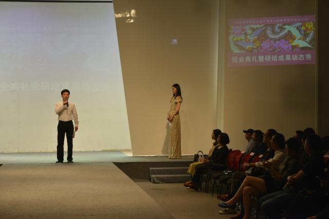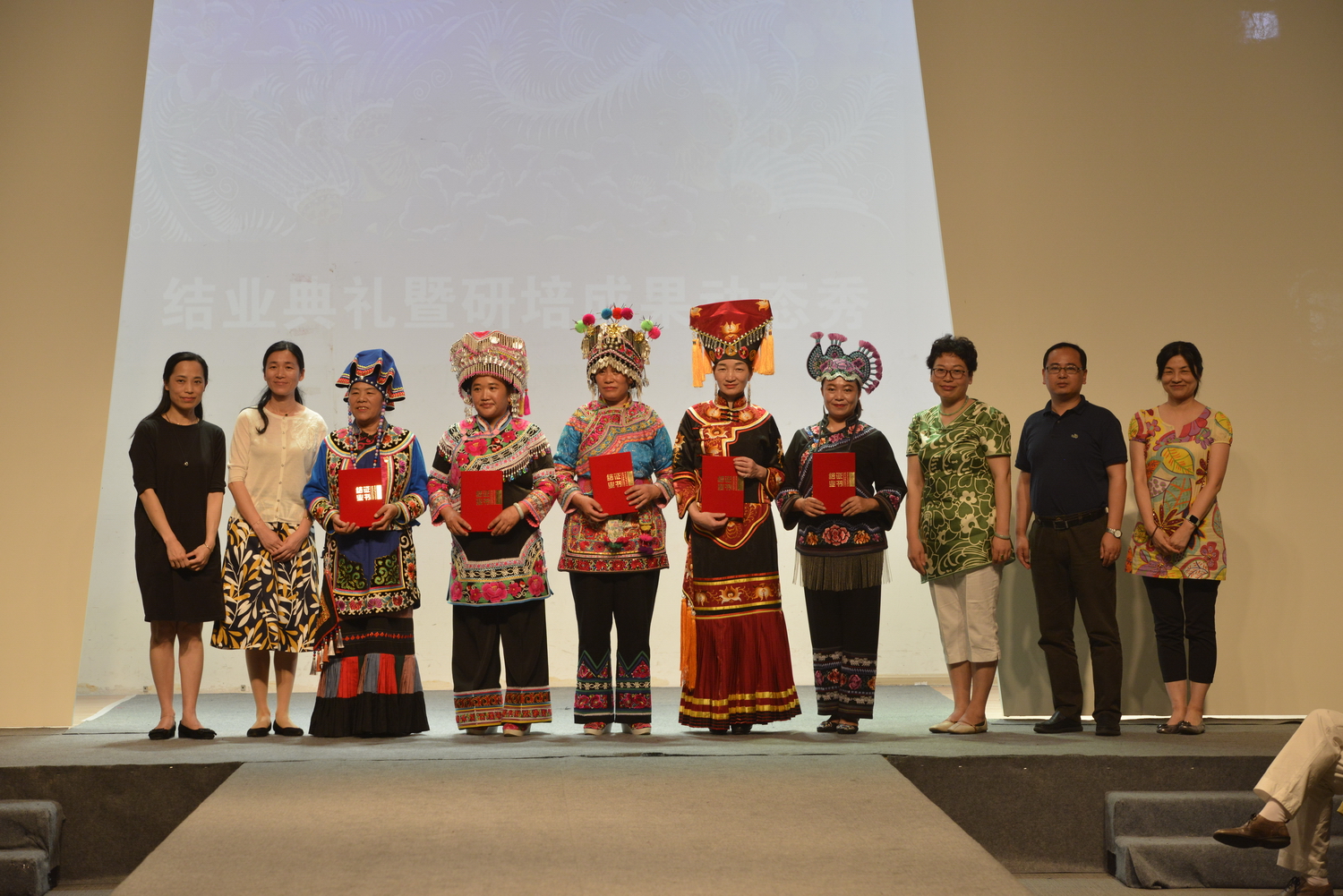 6月5日,91官网 第六期《传统刺绣创意设计》非遗传承人群研修班“薪火彝情”结业典礼暨研培成果动态秀在延安路校区逸夫楼二楼表演厅举行。91官网 副校长舒慧生,上海市文广局非遗处原处长杨庆红,91官网 党委书记吴晶、院长李俊,非遗研究中心主任柯玲、教学主管陈彬等非遗研培教师代表及合作企业代表参加。解放日报、新民晚报等沪上主流媒体记者现场采访报道。