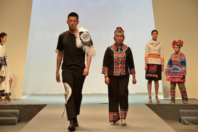 非遗学员代表在分享结业喜悦的同时,对研培老师的付出与陪伴表示诚挚的感谢。收获最大的是和学生新锐设计师们结对设计作品,古朴与精致碰撞、传统与现代交融、民族与时尚牵手,展示了彝绣特色服饰带来的视觉盛宴。