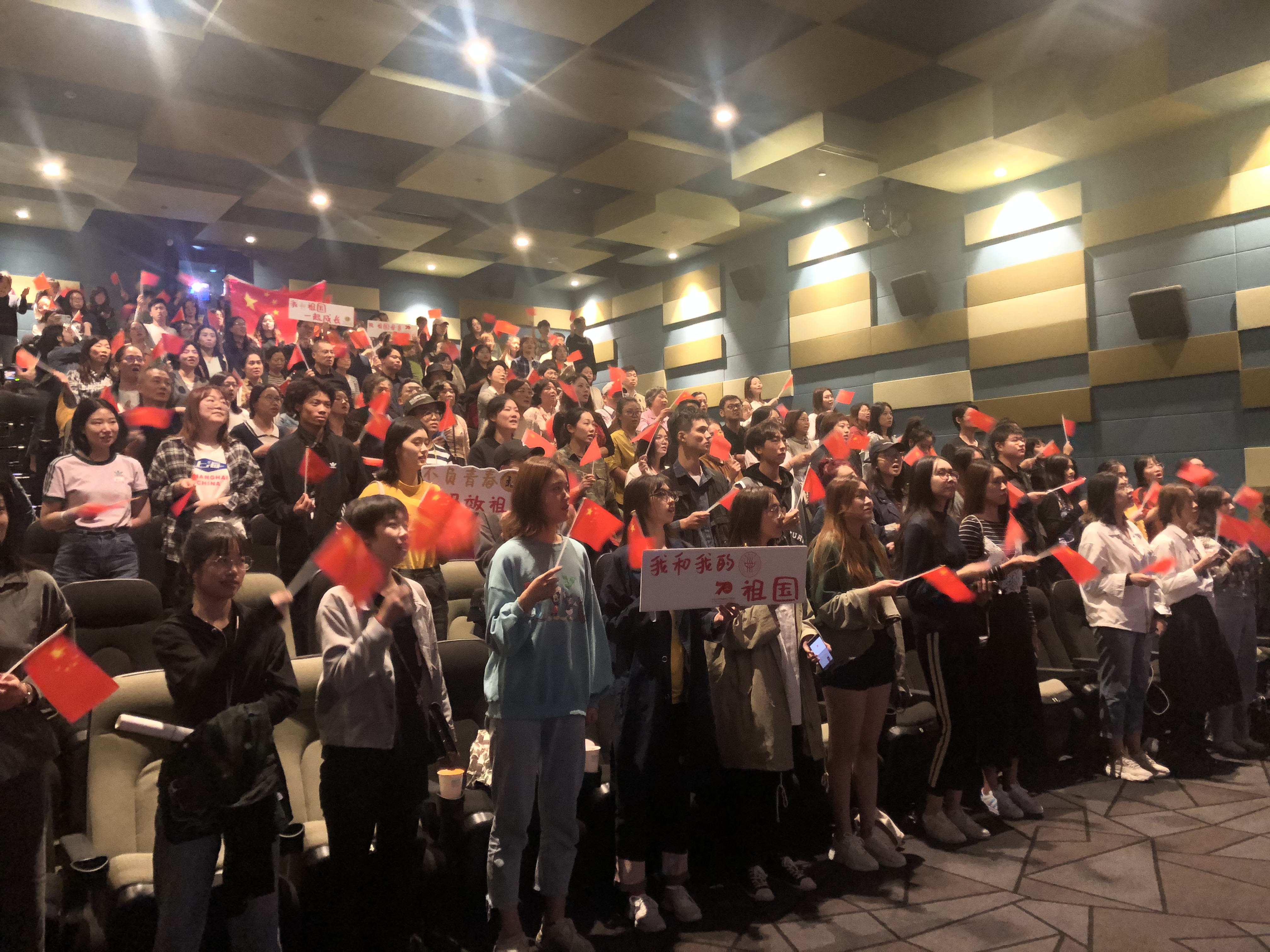 开班仪式后,全场师生一同观看了爱国主义电影《我和我的祖国》。作为新中国成立70周年献礼影片,电影通过过往70年时间轴上发生的七个重要的历史事件,讲述个人命运和国家发展之间密不可分的动人故事,以小人物见证大时代,带着我们感受祖国70年来的日新月异。在场师生被一个个片段感动得热泪盈眶,民族自豪感油然而生。电影结尾时,全场师生挥动小国旗,齐声高唱《我和我的祖国》,将活动推向高潮。