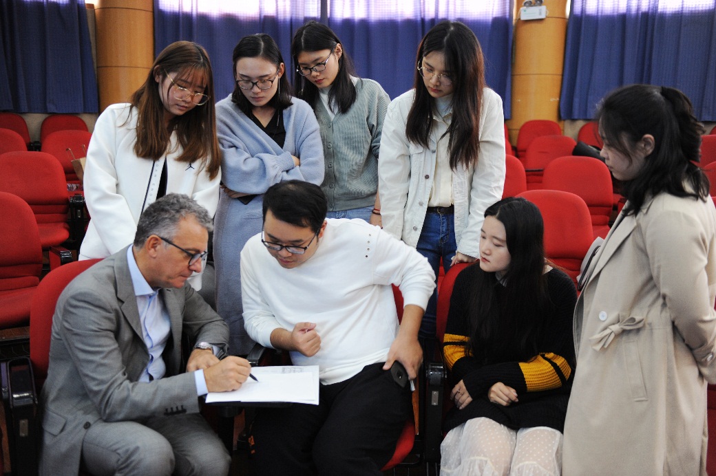 名师荟萃,高手云集!《环境艺术设计学》国际大师课程正式开课了!本次课程邀请到著名的佛罗伦萨大学建筑学院院长、意大利学科古建筑环境学科世界级领军人物文森佐(Vincenzo)教授、上海金茂大厦总建筑设计师欧德•邦德亚力(Guido Giacomo Bondielli)教授、国际著名的设计营销专家陈丁荣教授共同授课,给学生们提供了一次不用出国的“留学”机会。