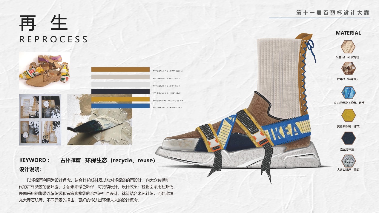 本次决赛活动除了答辩以外,依托中意鞋包创新峰会活动的开幕,使获奖作品可以被更多地业界人士所了解。徐成锐同学与何心悦同学凭借切合主题的设计方案,完整的答辩阐述以及独到的商业思路获得了多位专业评委的一致认可,进而斩获本次大赛的最高奖项。