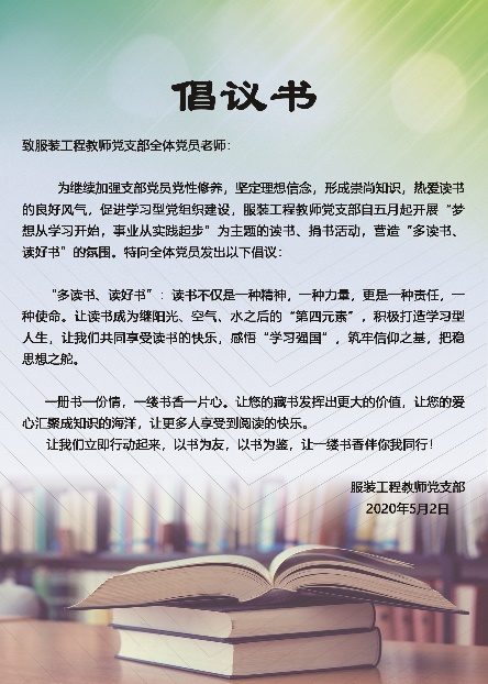 服装工程教师党支部开展“梦想从学习开始,事业从实践起步”读书活动