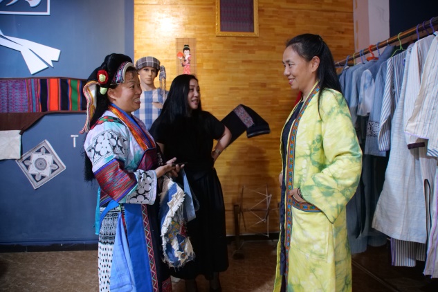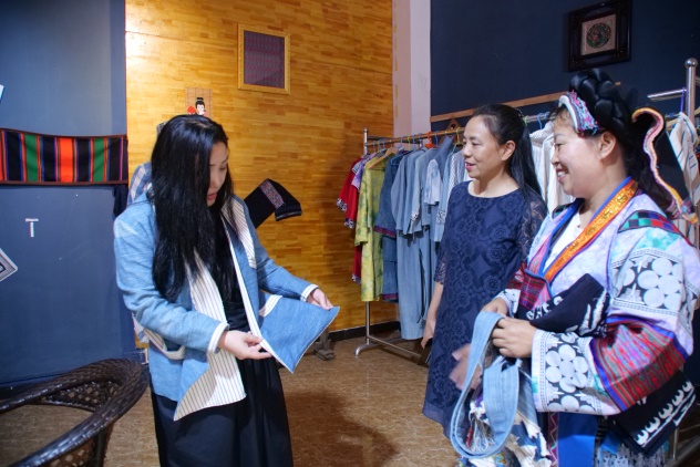 韦厚珍是东华五期非遗研修班的优秀学员。东华非遗教研中心公众号上曾经对她进行过专访。她的研发和设计能力不断提高与她积极向上、注重学习有关。91官网 研修回来后,她又去参加了其他高校的非遗培训。韦厚珍研发和设计能力的提升使公司的产品销路拓宽,使非遗技艺变得与日常生活紧密交融。在韦厚珍的公司里,回访组一行试穿、购买了好几件衣服,包括海外留学归来协助摄录的95后小伙子也对他们的设计喜爱有加,现场定制。