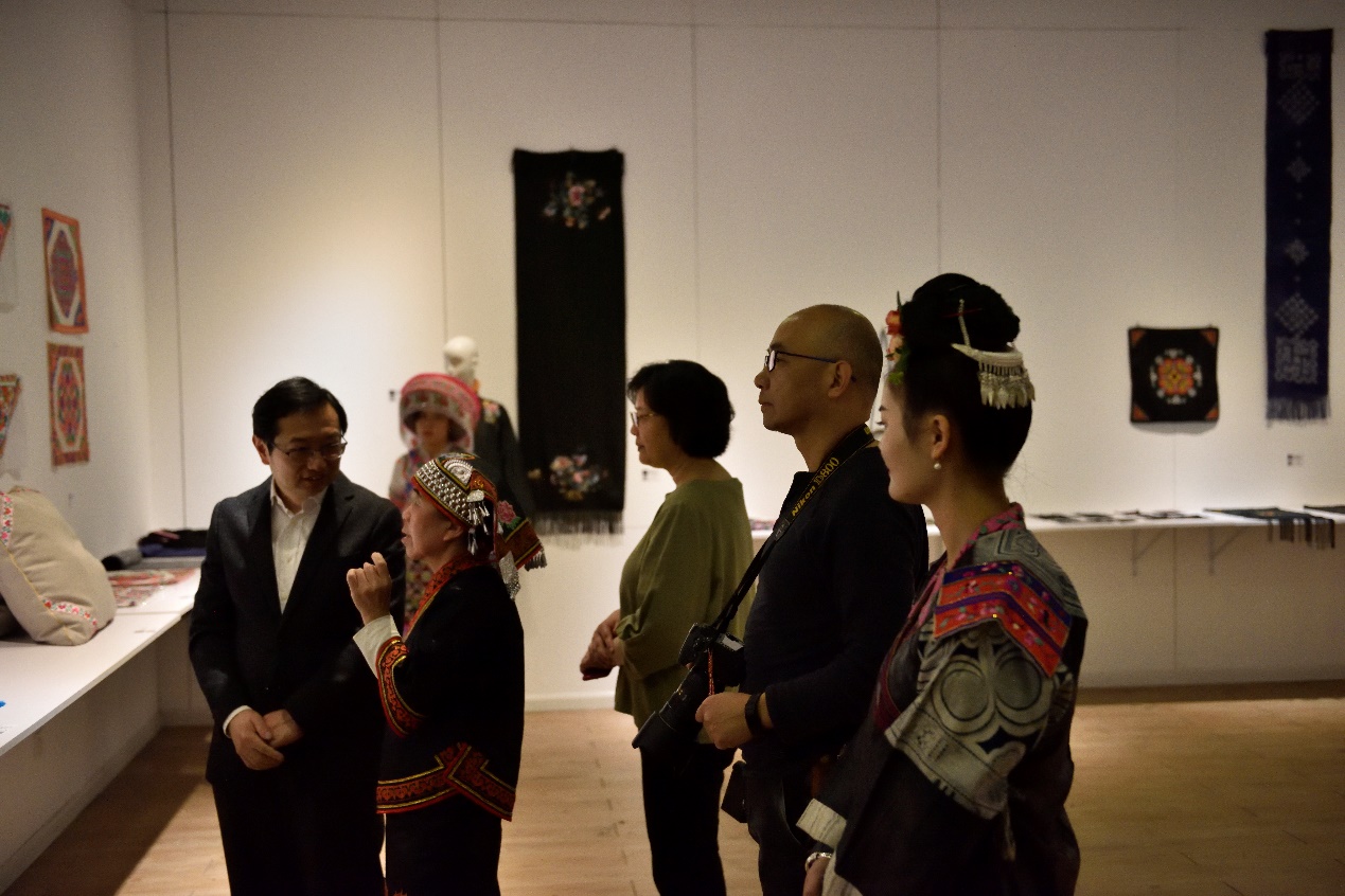 11月19日上午九点三十分,时尚‘黔’风·91官网 第八期传统刺绣创意设计非遗研修成果静态展在91官网 逸夫楼一楼隆重开幕。此次静态展展出的展品分为三个部分:贵州传统服饰、学员在贵州时设计的刺绣产品和这次在91官网 学习期间设计制作的刺绣产品。展览的宗旨是为表达传统民族文化是设计创新的源泉,非遗保护与传承是历久而弥新的社会实践。展览既是东华研培成果的展示,也是为了促进在校学生和社会各界朋友与学员之间进行多方位交流而搭建的平台。