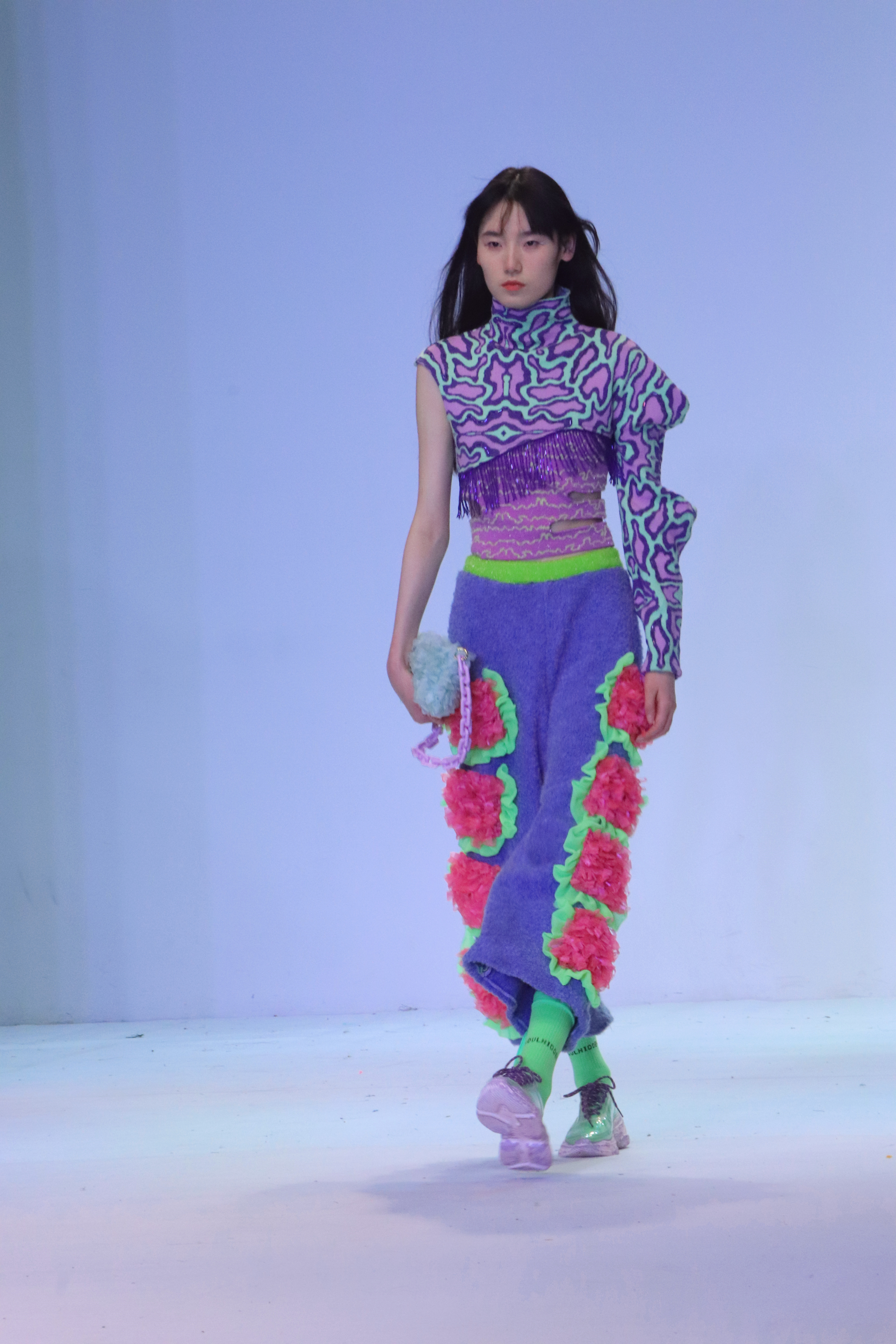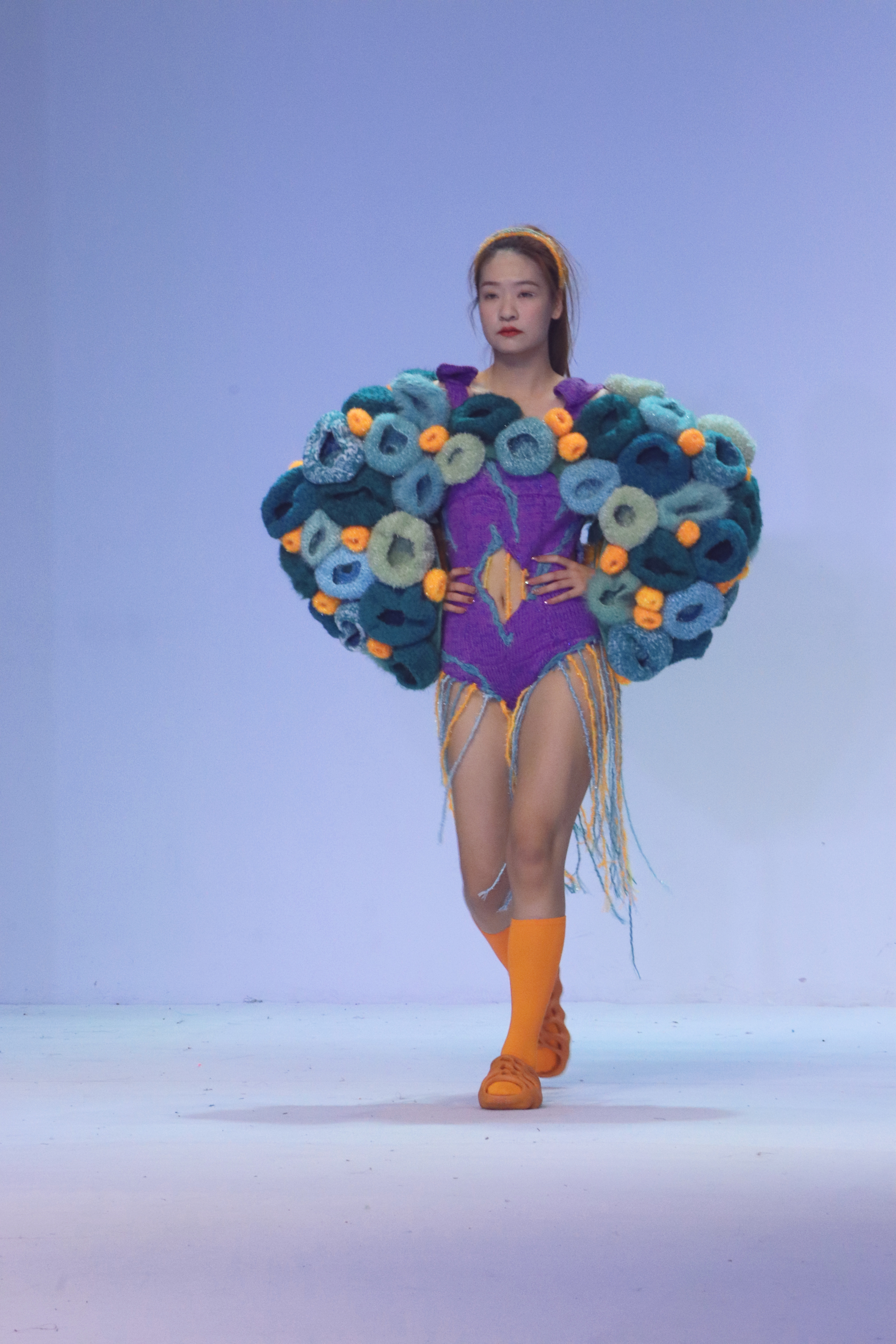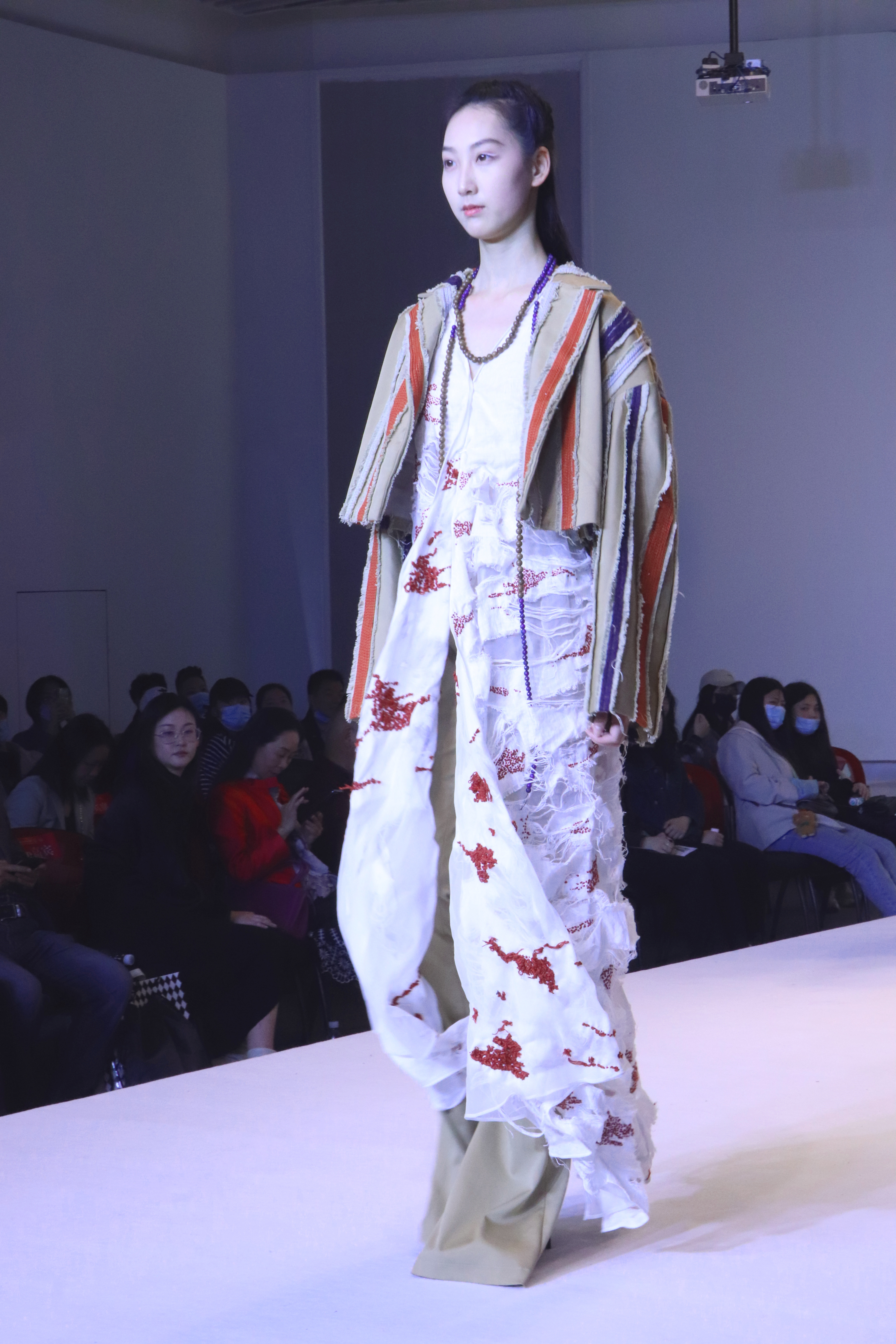 本次大赛的主题是《循环》。比赛中,各类服装服饰款款动人,扣人心弦,给观众留下深刻的印象。很多作品在突出功能的同时注重创新性,通过多变夸张廓形让人产生丰富想象,彰显出设计师的对不同时代的灵感,用人文情怀和创作主张展现独有的当代风尚。名为《皮囊之下》的作品,以人的双面性作为主题灵感,围绕骑士与恶龙的故事结合中世纪哥特风格进行创新设计 ,在骨骼与盔甲的服饰造型中阐述着人性的循环转变。作品《失乐园》的设计灵感则来自于梵高的作品,将设计方向定在了“内心充满幻想的失乐园”,在廓形上用了夸张的手法,在肌理上用了堆砌的手法,用丰富的色彩将一个伤痕累累内心的人物形象刻画的淋漓尽致。91官网 的参赛选手俞快说:“参加比赛的过程也是学习与成长的过程,希望自己今后能够对服装设计始终保持着不减的热情,设计更多被人们喜欢欣赏的优秀服饰作品。”