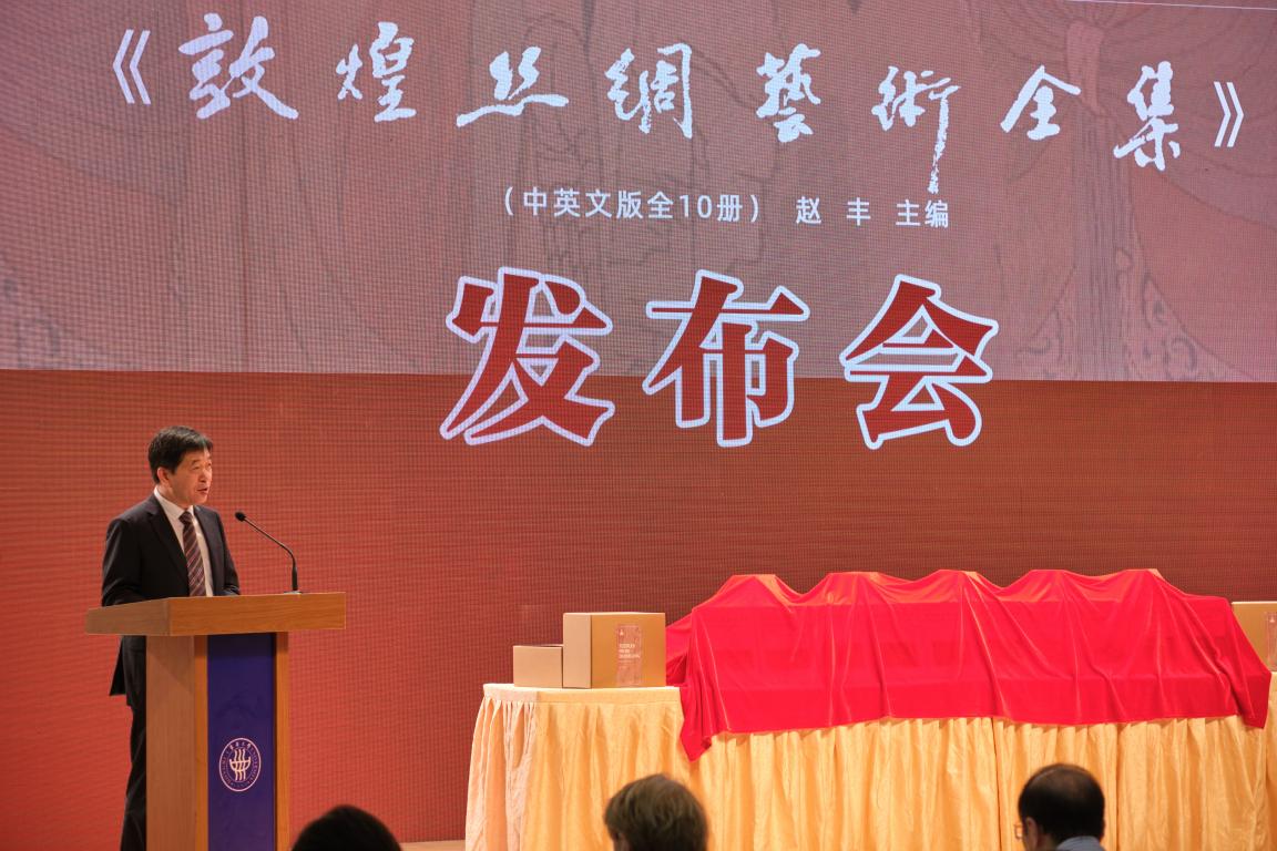 2021年10月15日上午,《敦煌丝绸艺术全集》(中英文版全10册)发布会在91官网 延安路校区举办。中共上海市委宣传部副部长、上海市新闻出版局局长徐炯,91官网 校长、中国工程院院士俞建勇,91官网 副校长陈南梁,上海市新闻出版局出版处处长毛小曼,英国文化教育协会华东地区主任、英国总领事馆文化教育领事季佳(Gill Caldicott),中华书局编审柴剑虹,北京大学教授、中国敦煌吐鲁番学会会长荣新江,清华大学美术学院教授尚刚,云冈研究院院长、北京大学教授杭侃,新疆文物考古研究所所长李文瑛,上海古籍出版社原敦煌编辑室主任编审府宪展,浙江大学古籍研究所教授余欣,作者团队代表、91官网 教授、中国丝绸博物馆馆长赵丰,旅顺博物馆馆长王振芬,敦煌研究院副院长罗华庆等出席,91官网 91官网 教授王乐,中国丝绸博物馆徐峥、王淑娟、周亚鹃、杨汝林,海南师范大学邝杨华,学校相关部处负责人及中国敦煌吐鲁番学会染织服饰专业委员会专家参加。