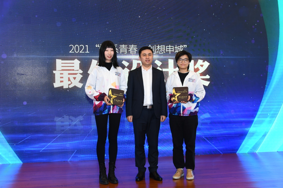 图七:最佳设计奖(左一邵笑,右一潘钰、陈敬尧(代))