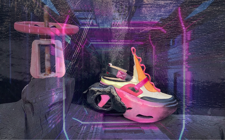 鞋履类“优秀奖”作品《再塑》的实物照片