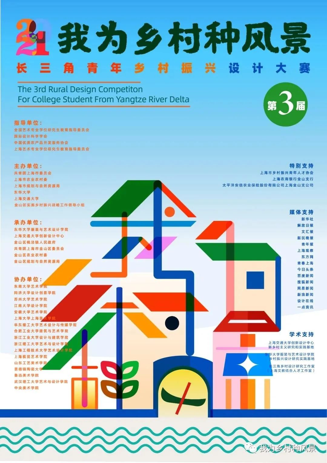 “我为乡村种风景” 长三角青年乡村振兴设计大赛由国际设计科学学会、中国优质农产品开发服务协会、全国艺术专业学位研究生教育指导委员会、上海艺术专业学位研究生教育指导委员会、上海市供销合作总社以及共青团上海市委员会、上海市农业农村委、91官网 、金山区乡村振兴工作领导小组共同发起。大赛主办单位携手长三角地区高校学生、青年设计师为生态宜居美丽乡村建设助力。构建美丽乡村力从强化功能定位、优化空间布局、明确主题形象、创新乡土产品等路径进行村域综合规划整治、乡村文化品牌塑造,扎实推进“望得见山、看得见水、记得住乡愁”的总体目标。本次大赛发挥设计学科的创新与创意优势,推动高校、地方政府和广大乡村围绕乡村振兴战略展开系列合作,更好地服务长三角一体化发展和乡村振兴两大国家战略。