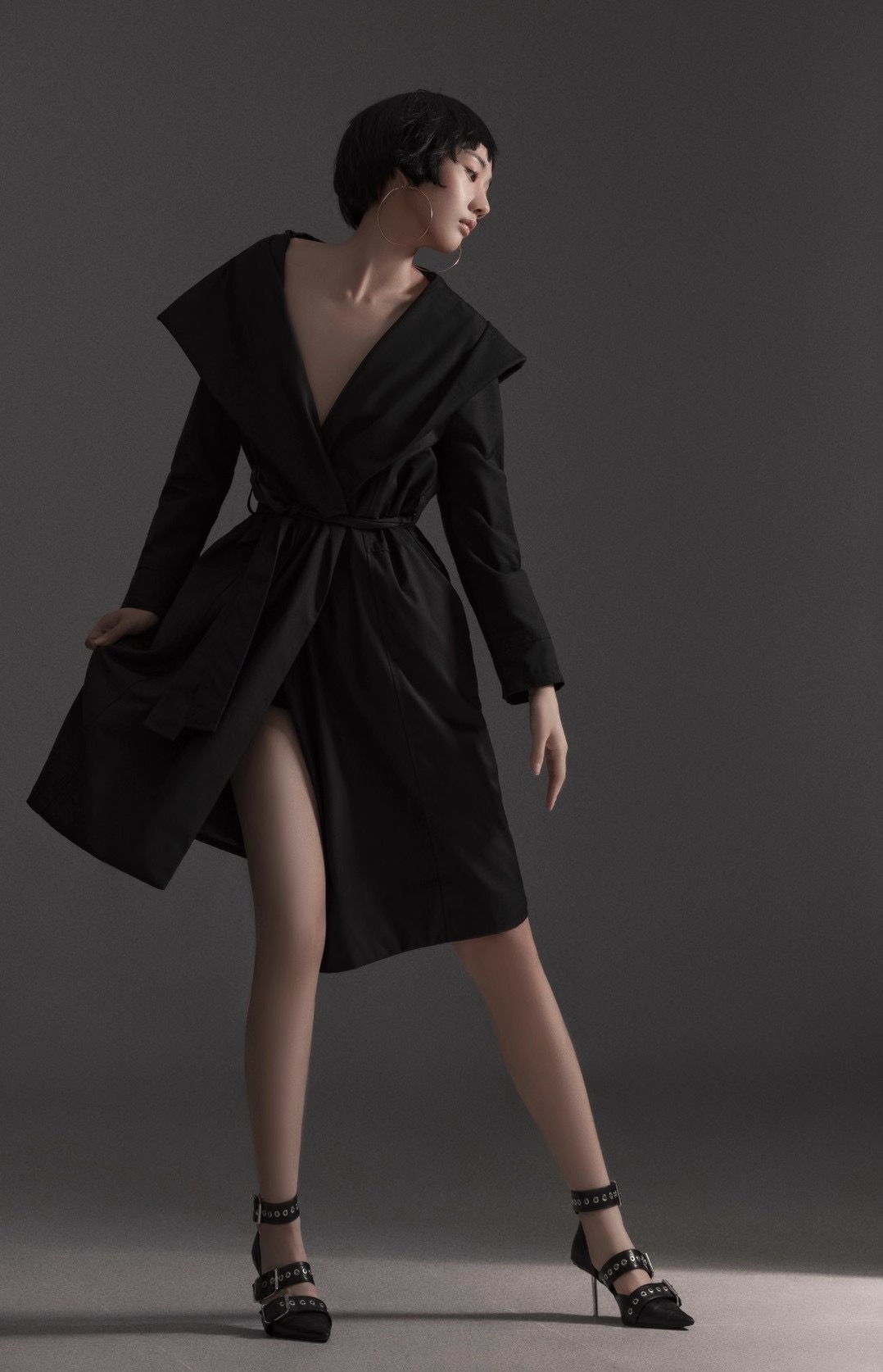 ——简洁的背景,较大的光比,与模特的造型匹配完美、相得益彰。