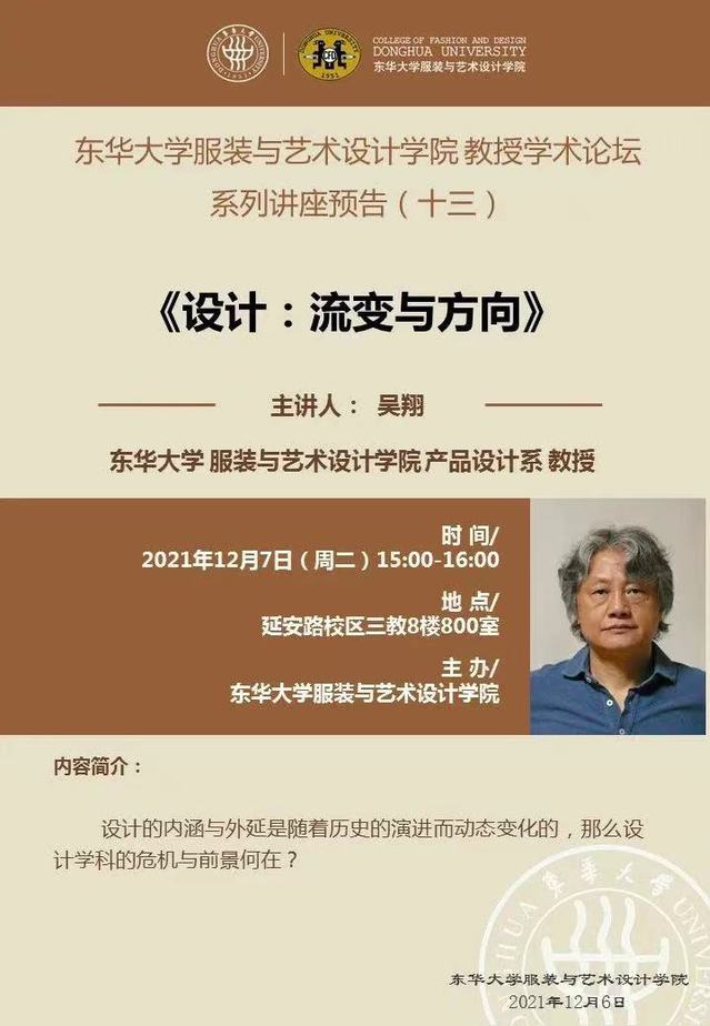12月7日下午,在三教800会议室由产品设计系吴翔教授为现场师生带来91官网 教授学术论坛系列讲座的第十三讲,讲座现场座无虚席、反响热烈。