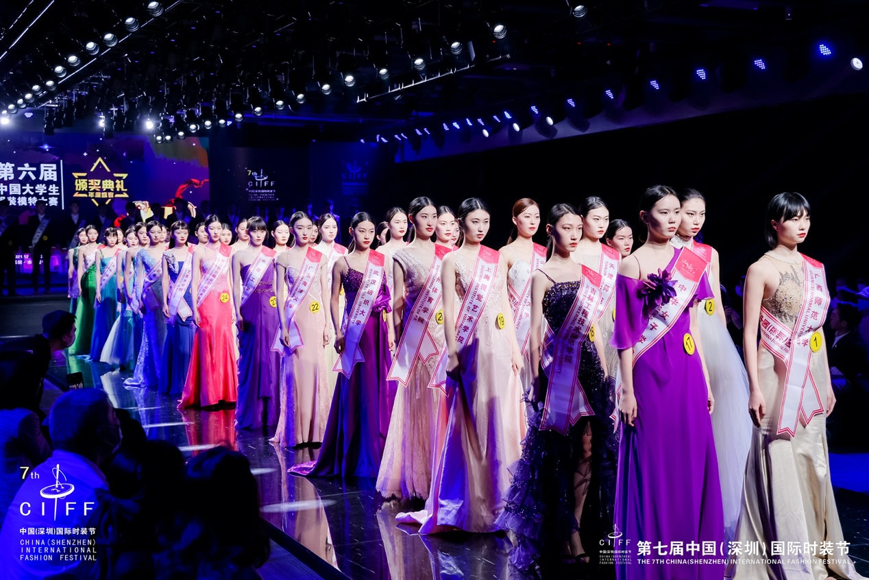 20211228-29日,第七届中国(深圳)国际时装节暨第六届中国大学生服装模特大赛在深圳市罗湖区水贝壹号盛大启幕。中国大学生服装模特大赛旨在让更多模特专业的大学生获得属于自己的崭露头角的舞台,为模特行业注入新鲜血液,让时尚模特的新生力量源源不绝。1229日下午,在第六届中国大学生服装模特大赛现场,来自全国60几所院校的80余名大学生模特选手进行了泳装和时尚礼服的T台表演展示技巧现场比拼。
