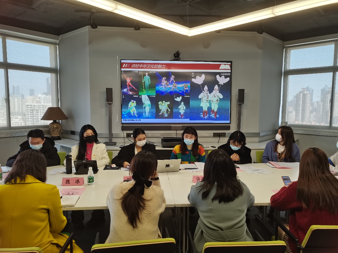 支部委员结合习近平总书记“七一”重要讲话、党的十九届六中全会精神等相关内容,分别以“新年贺词共进步”、“冬奥盛会赛佳绩”为题开展主题微党课。支部党员付燕妮也分享了她作为团队成员参与冬奥会服装设计的宝贵经历。“冬奥会让我感受到了冬奥健儿谷爱凌、苏翊鸣等一批青年的向上力量,从她们的身上学习到了坚持、热爱、勇敢的精神。作为学生党员,我们要在伟大建党精神中汲取强大精神力量,不忘初心,牢记使命,勇于突破自我,不负人民!”支部党员围绕主题进行了充分的讨论。