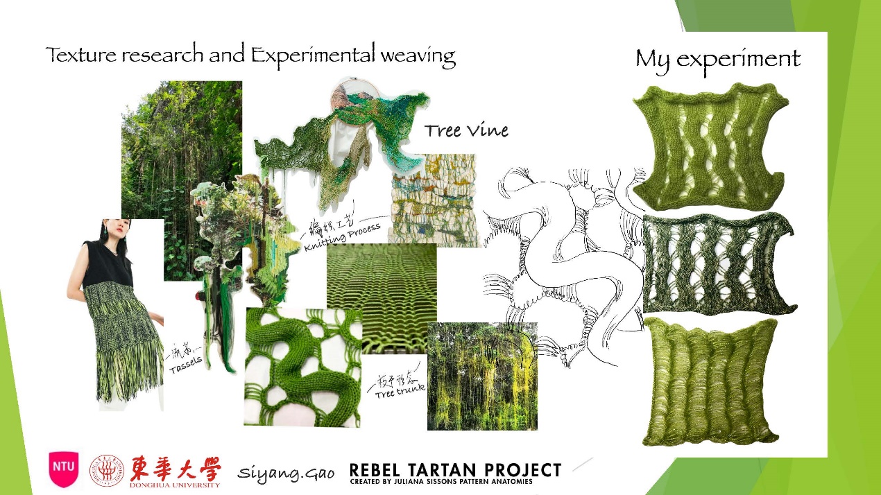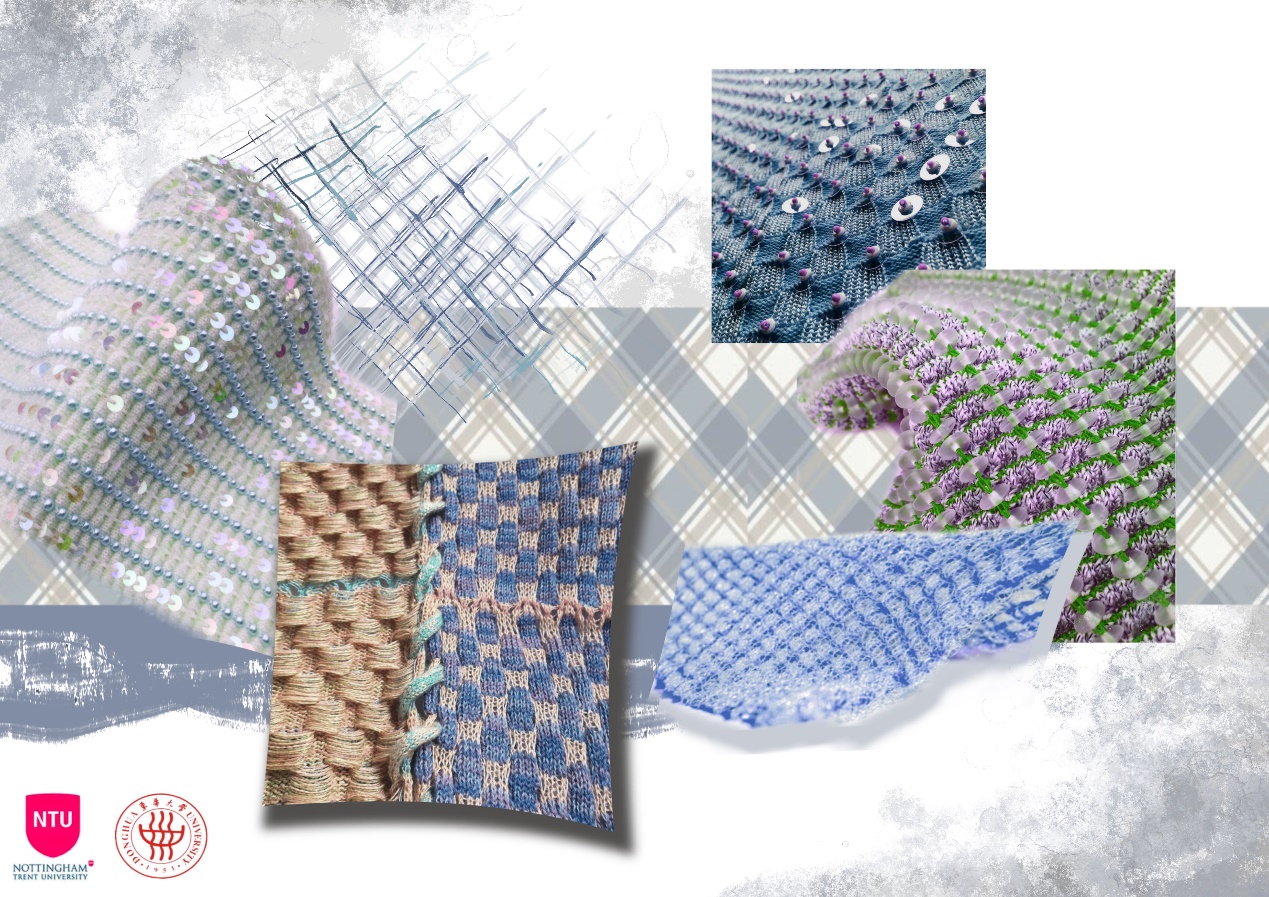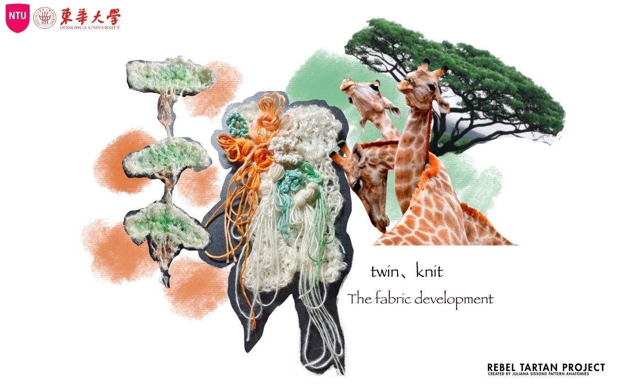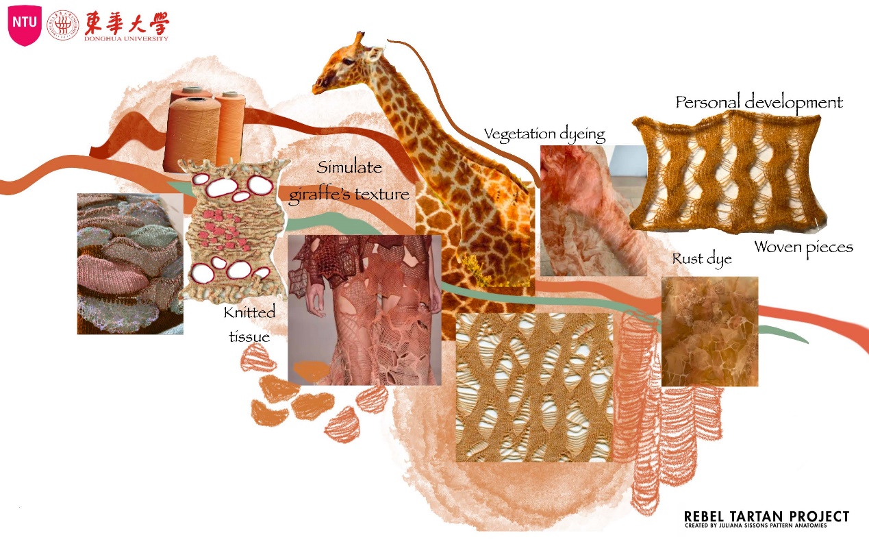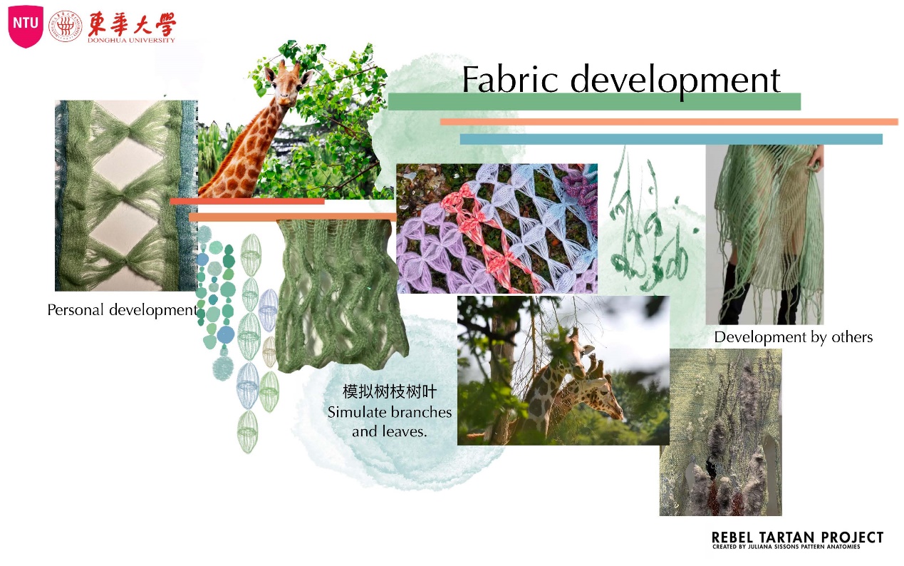 第一模块,依托诺丁汉特伦特大学(Nottingham Trent University,NTU)艺术与设计学院的Rebel Tartan项目,我系部学生与NTU的学生组队,分8组,开展以气候变化为关注点的可持续针织服装主题调研与设计,并完成小组和个人的创意及开发阶段线上汇报。
