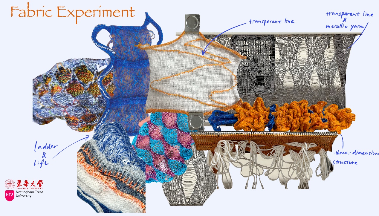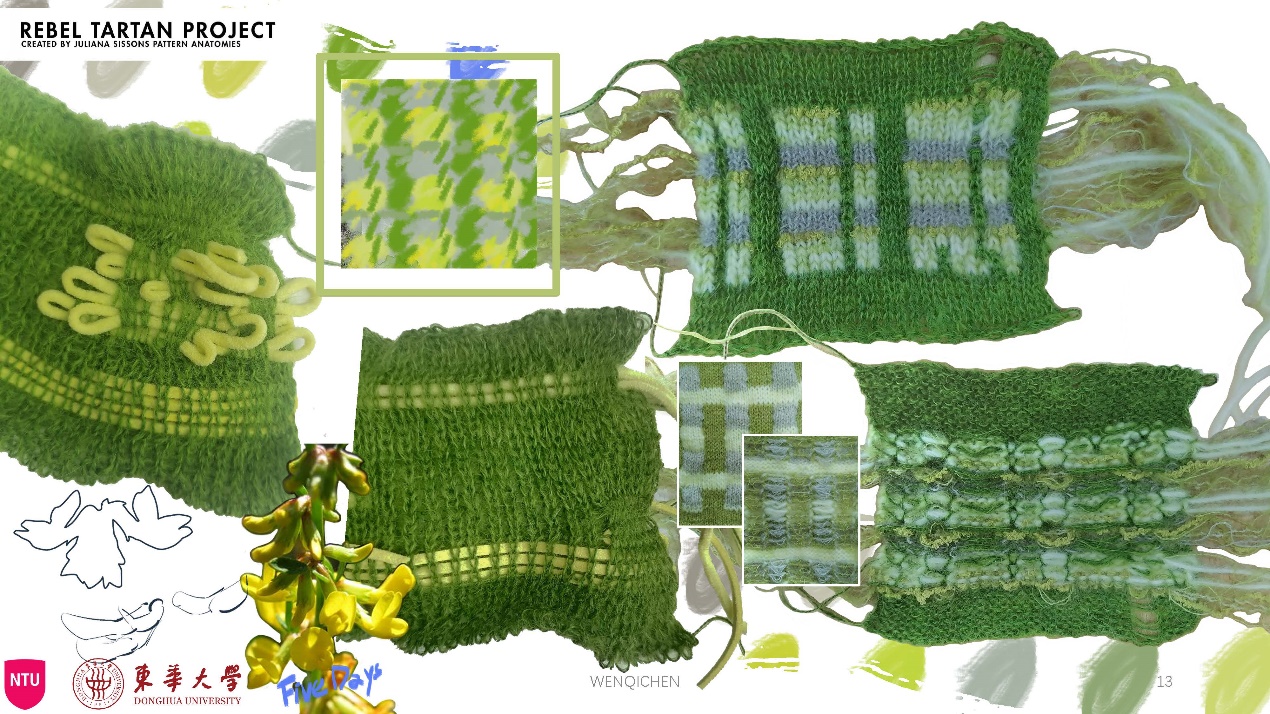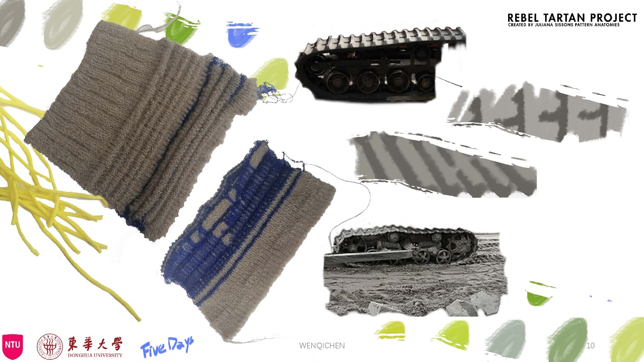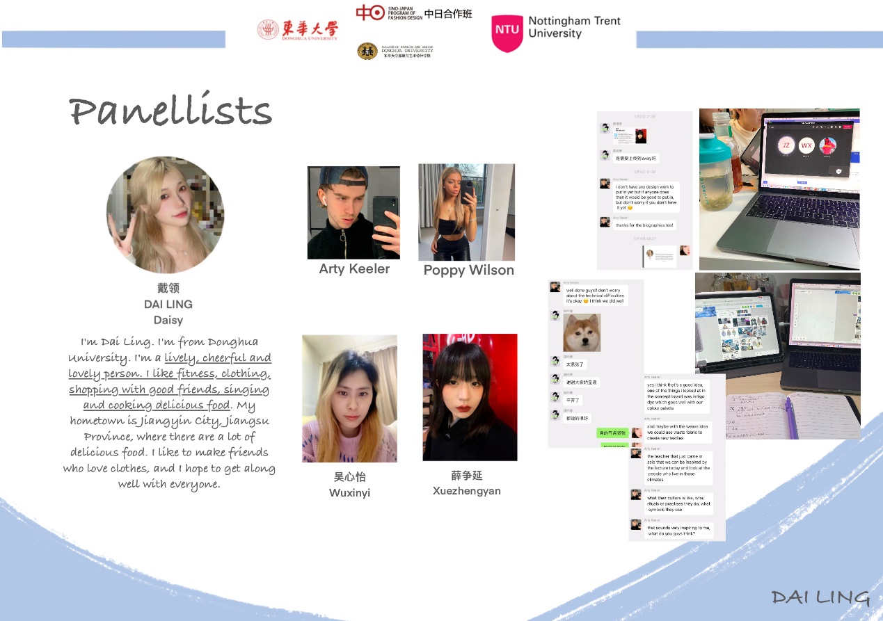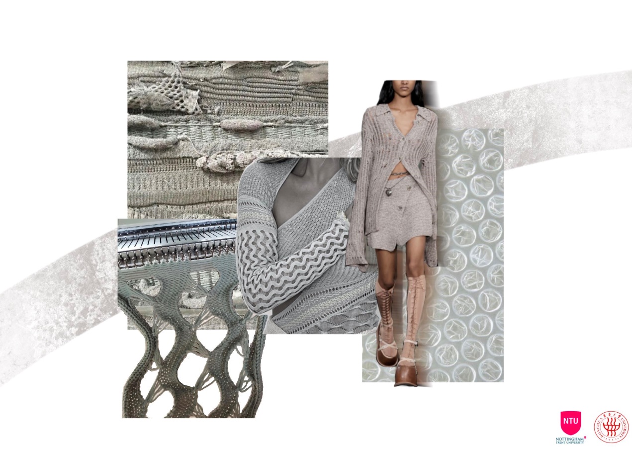 第一模块,依托诺丁汉特伦特大学(Nottingham Trent University,NTU)艺术与设计学院的Rebel Tartan项目,我系部学生与NTU的学生组队,分8组,开展以气候变化为关注点的可持续针织服装主题调研与设计,并完成小组和个人的创意及开发阶段线上汇报。