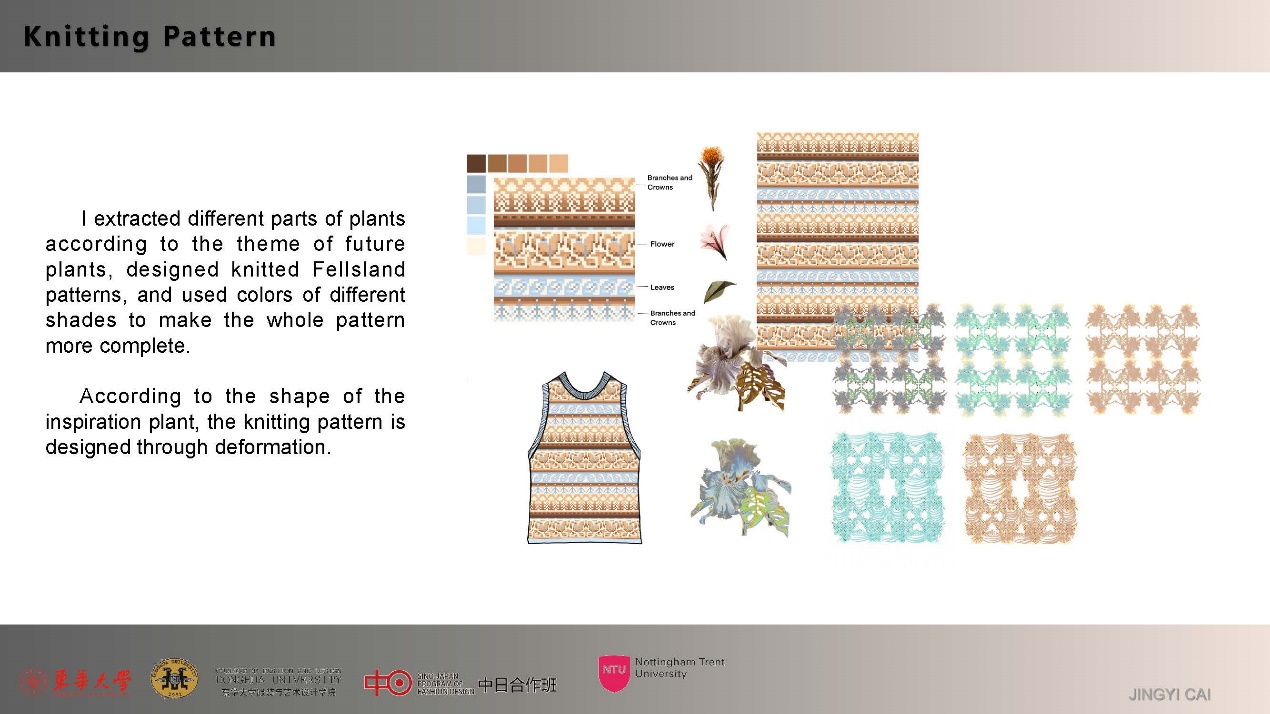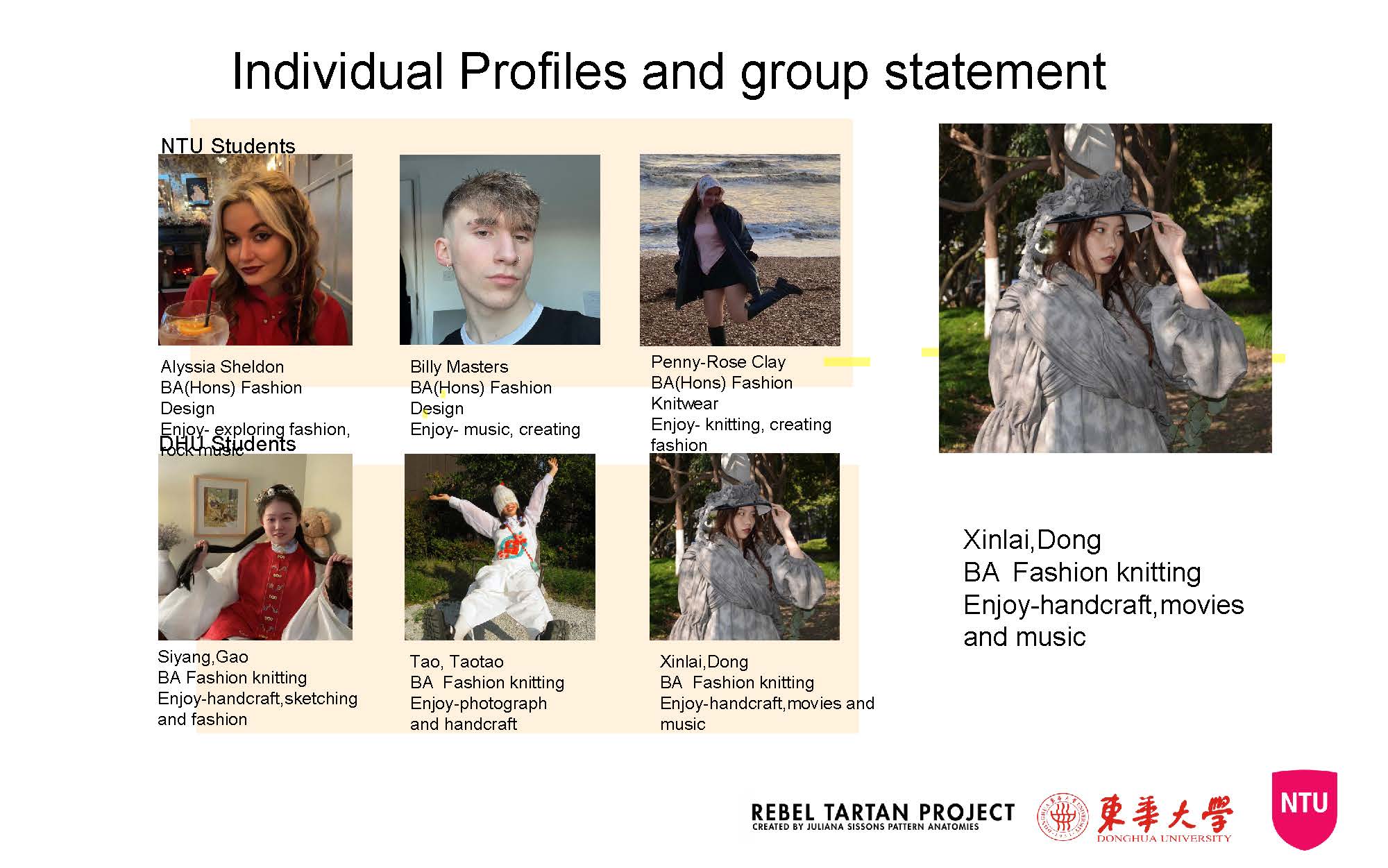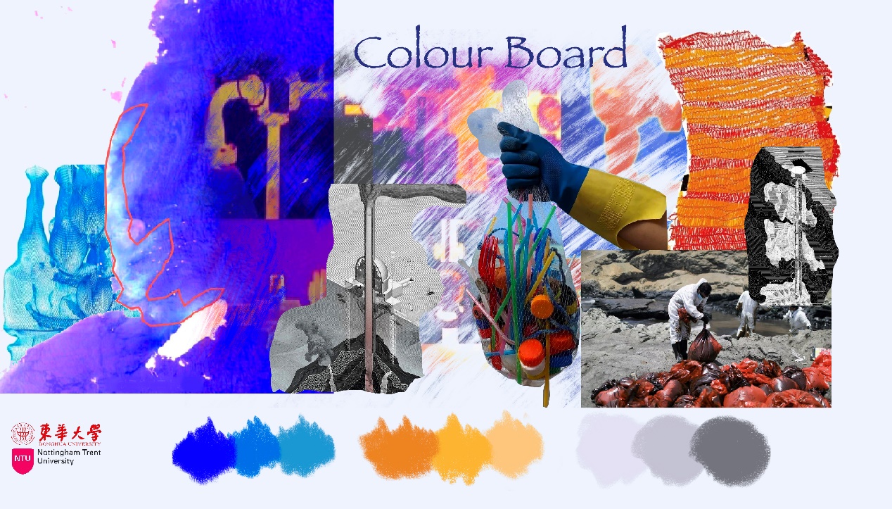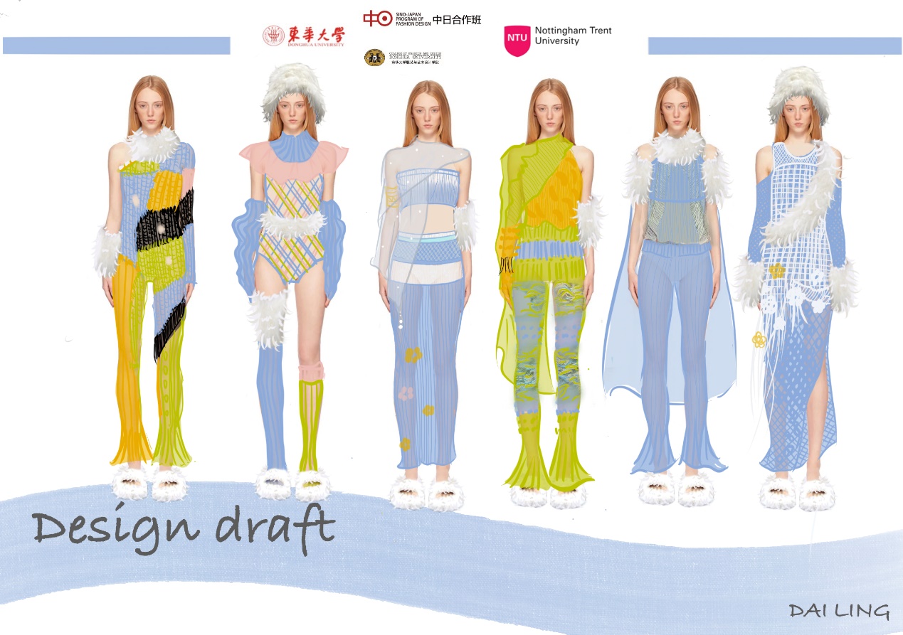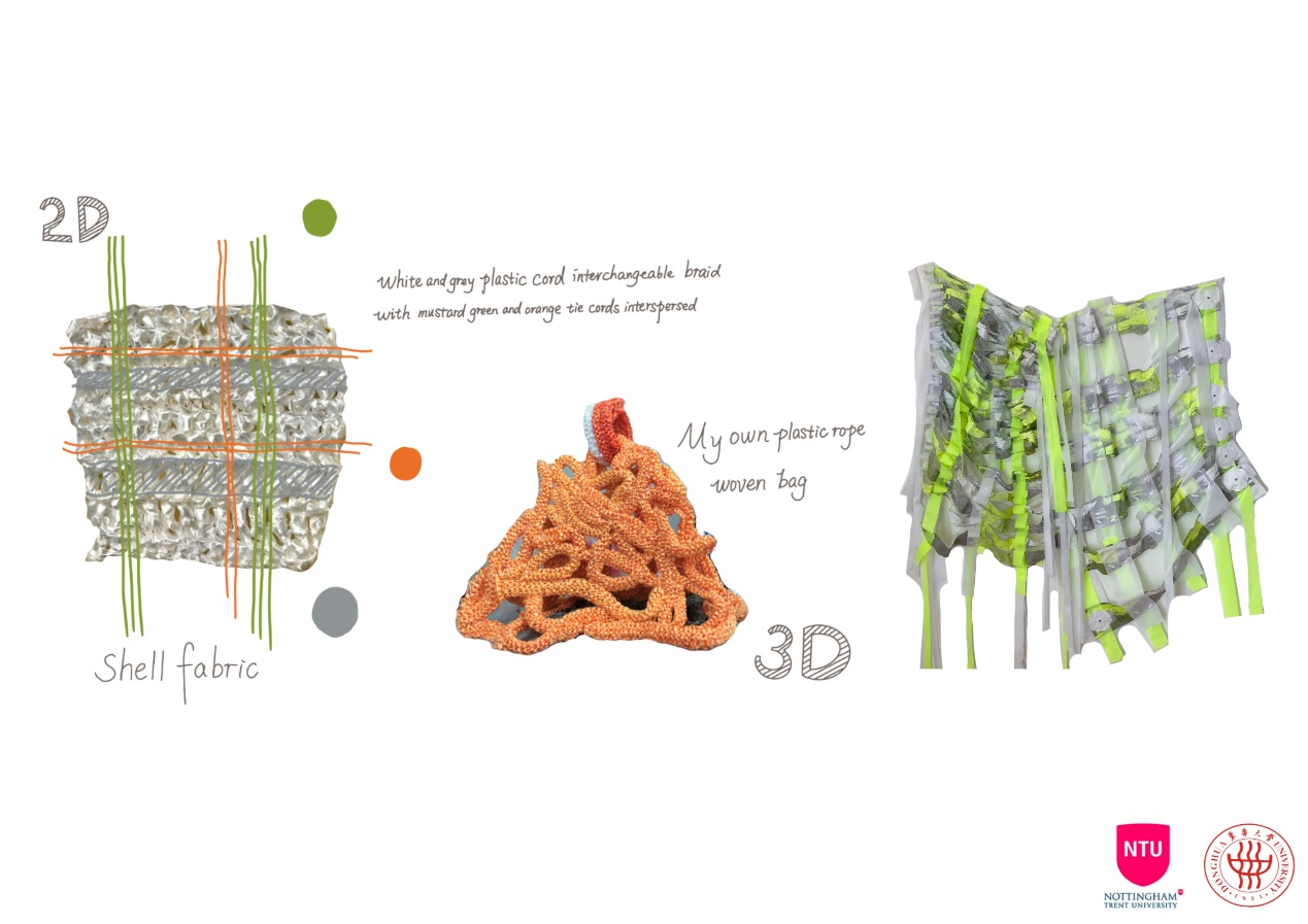 第一模块,依托诺丁汉特伦特大学(Nottingham Trent University,NTU)艺术与设计学院的Rebel Tartan项目,我系部学生与NTU的学生组队,分8组,开展以气候变化为关注点的可持续针织服装主题调研与设计,并完成小组和个人的创意及开发阶段线上汇报。