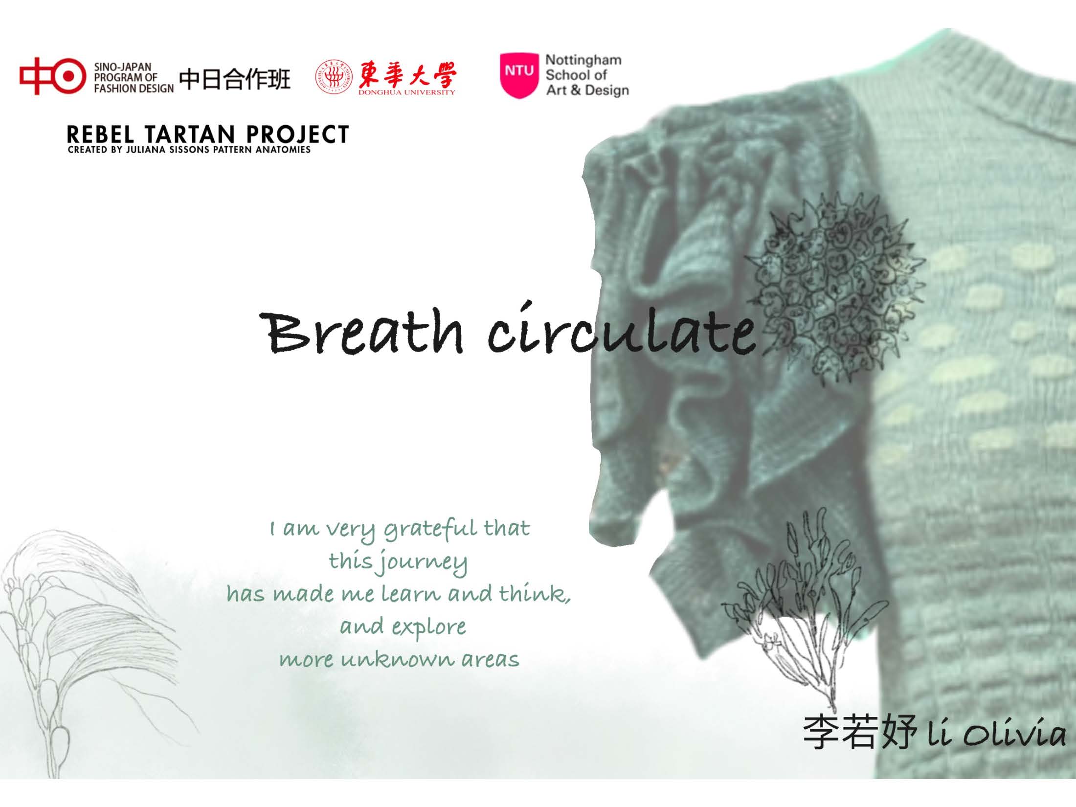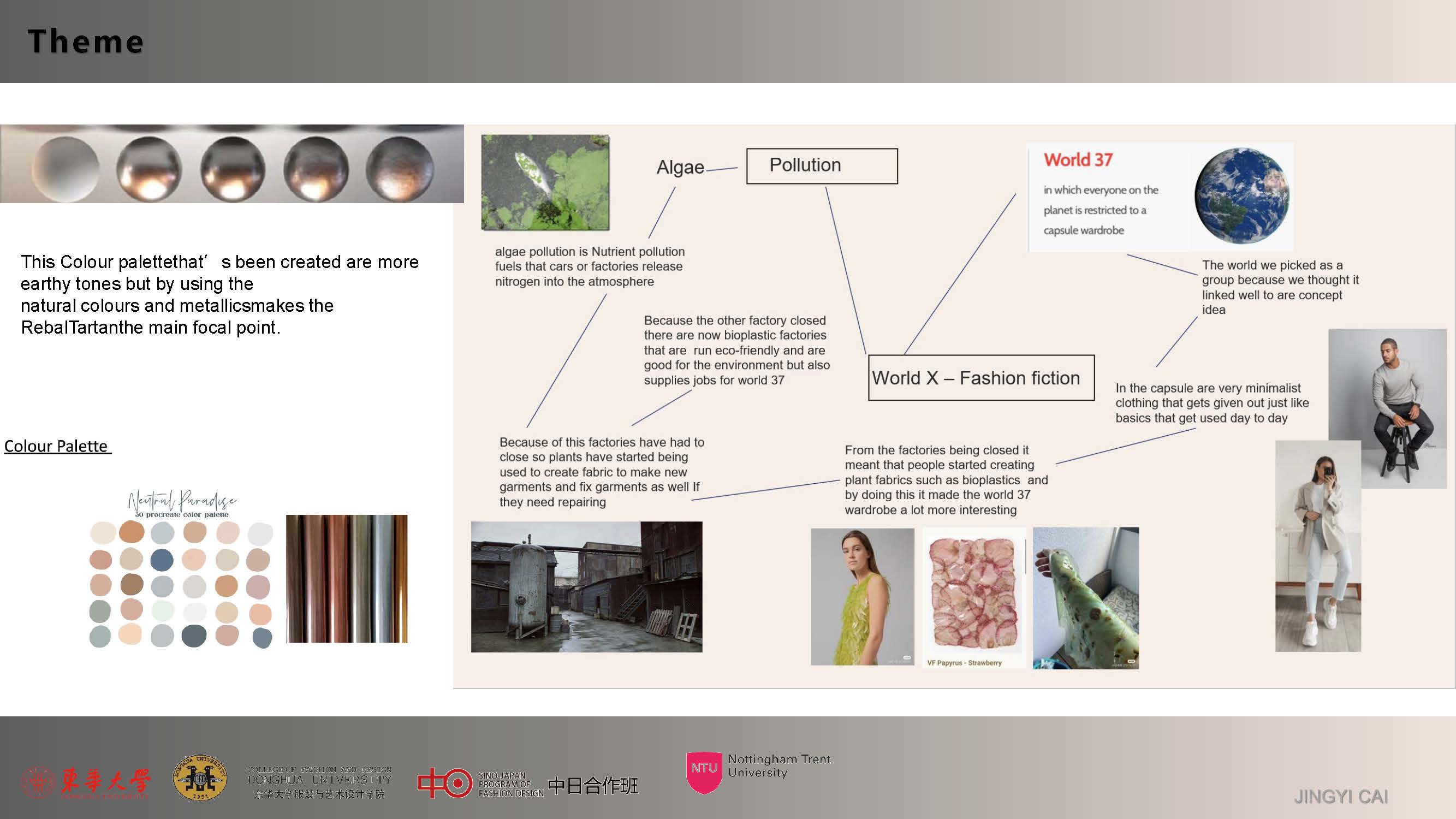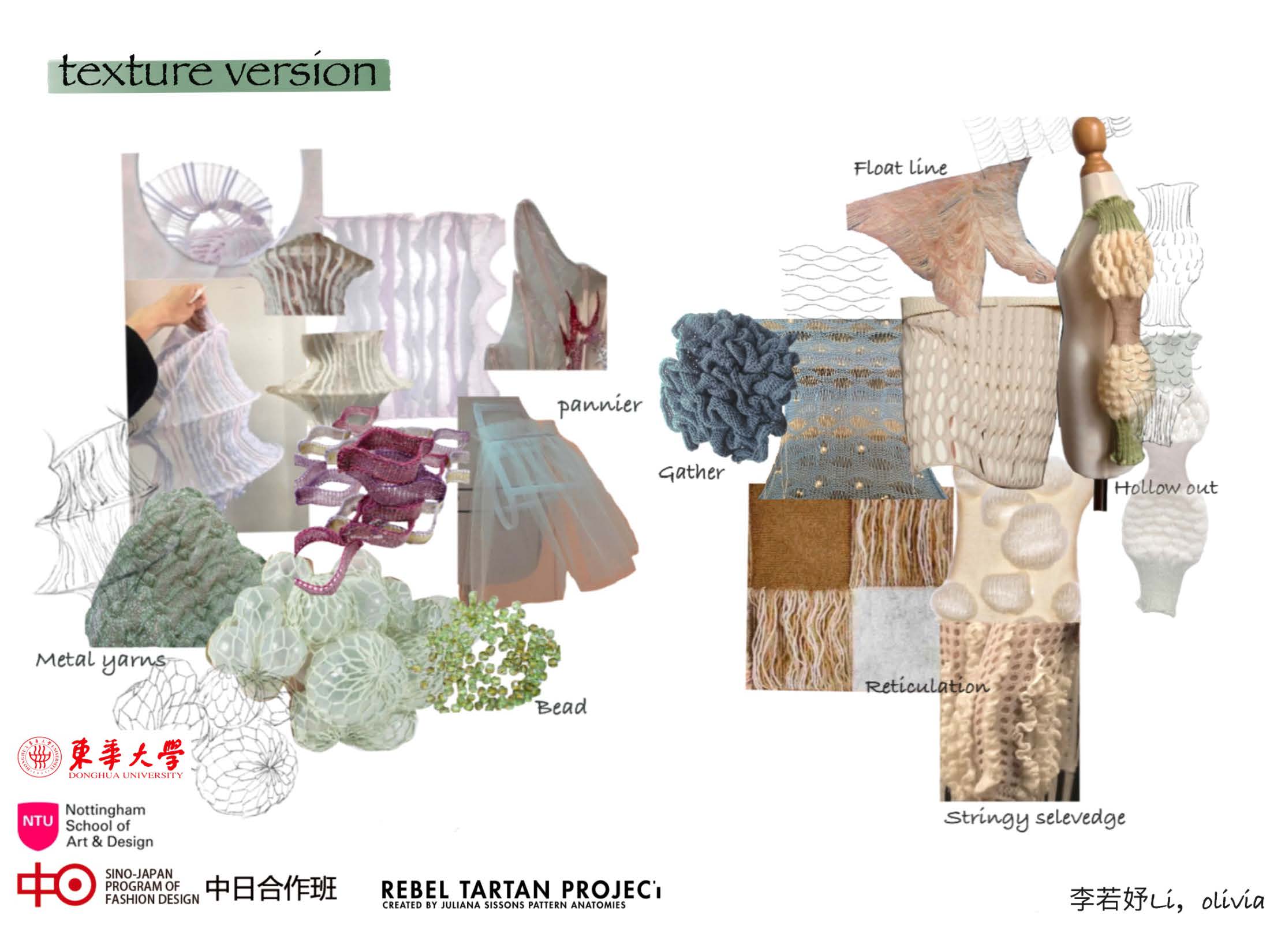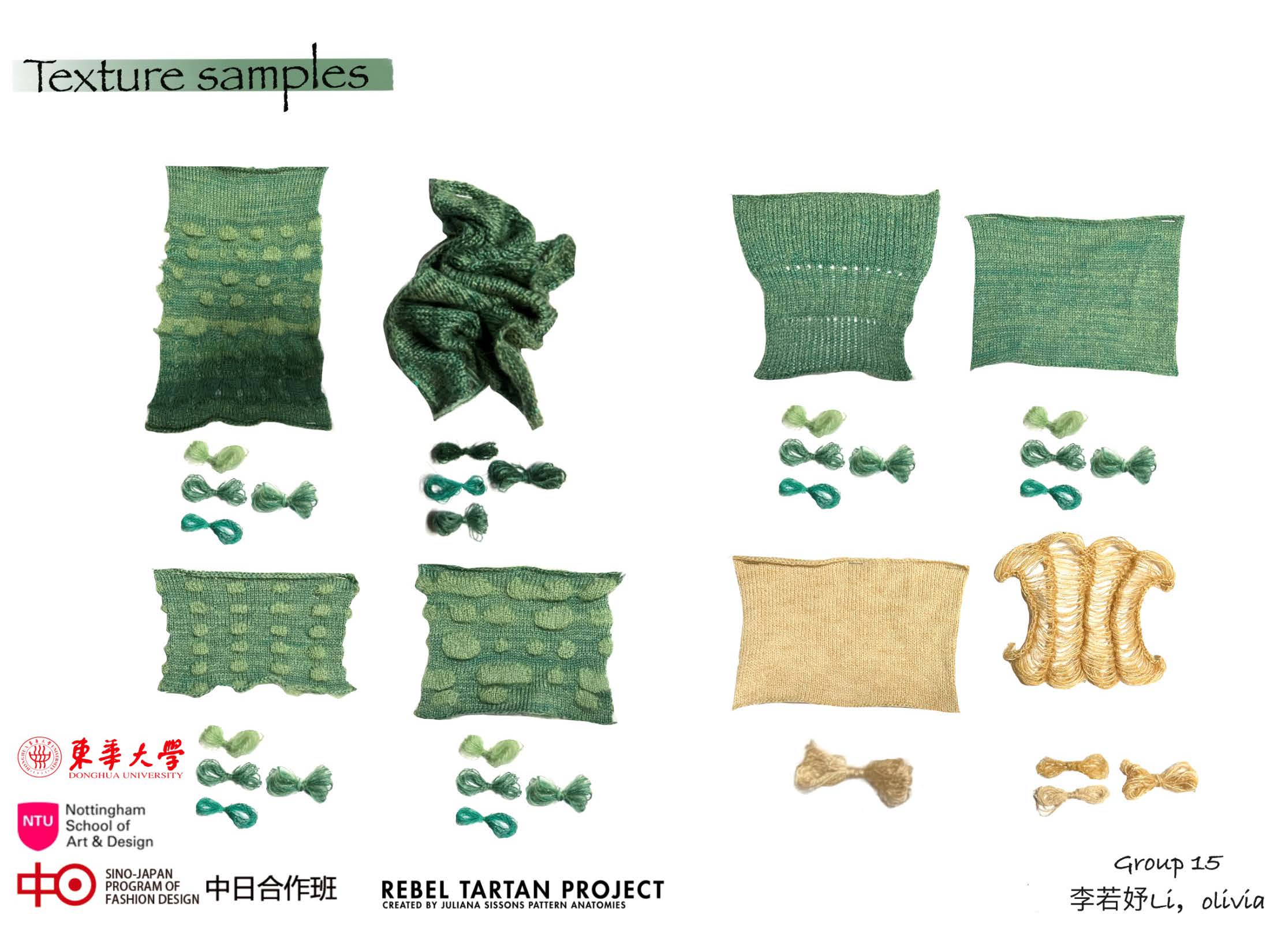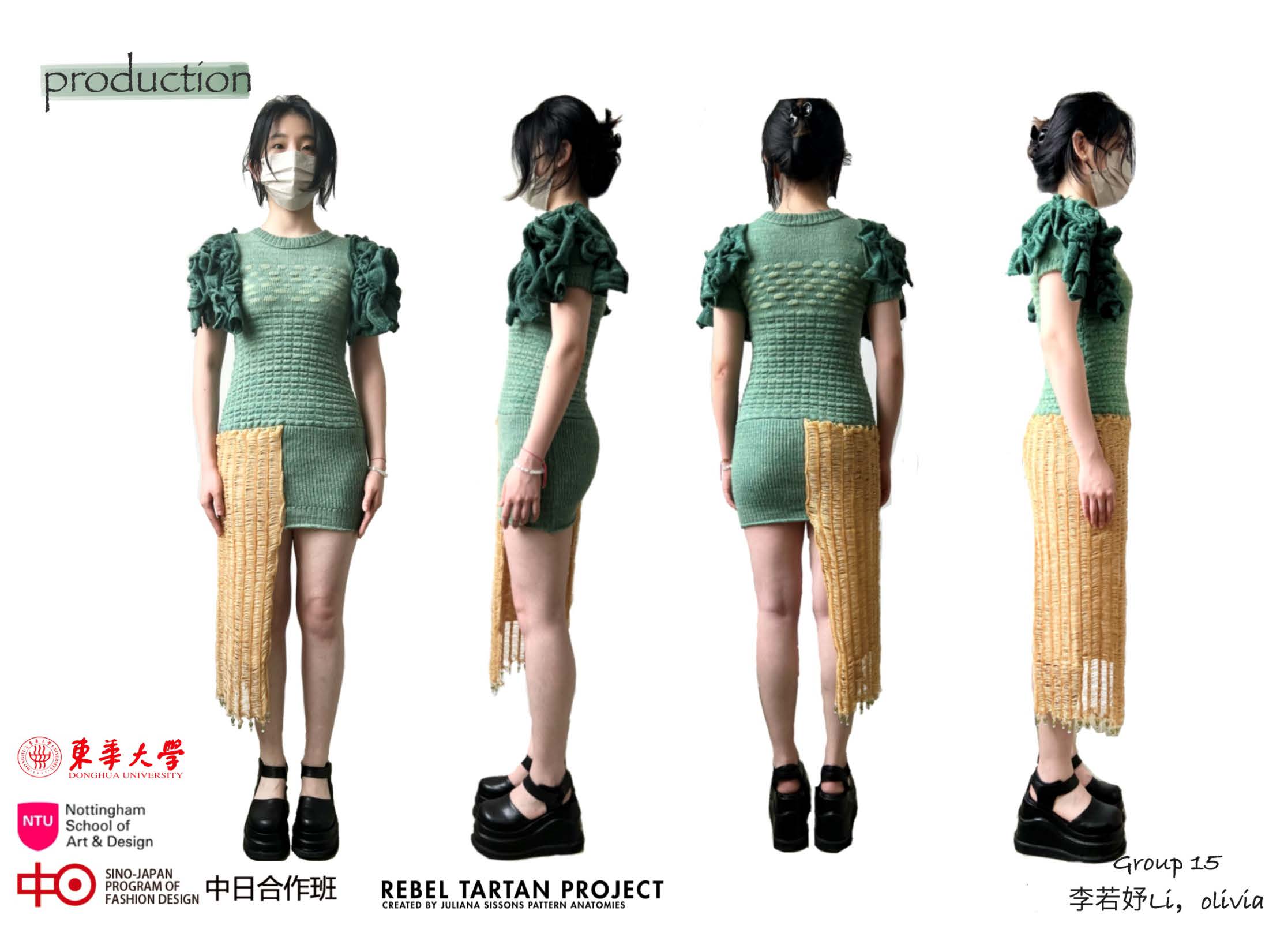 第一模块,依托诺丁汉特伦特大学(Nottingham Trent University,NTU)艺术与设计学院的Rebel Tartan项目,我系部学生与NTU的学生组队,分8组,开展以气候变化为关注点的可持续针织服装主题调研与设计,并完成小组和个人的创意及开发阶段线上汇报。