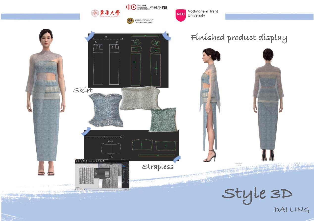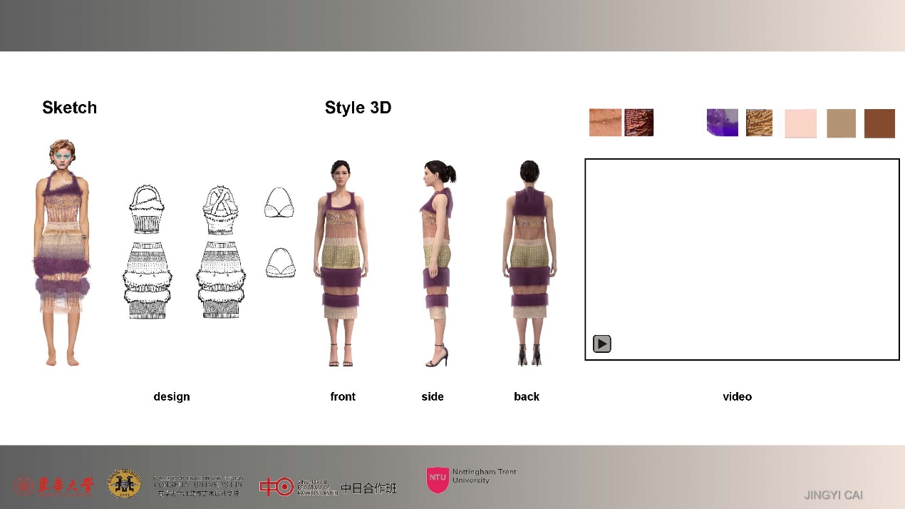 第二模块,我系部学生继续深入个人主题的设计与开发:通过Style 3D,完成从设计到虚拟缝合、以及成衣展示的过程。