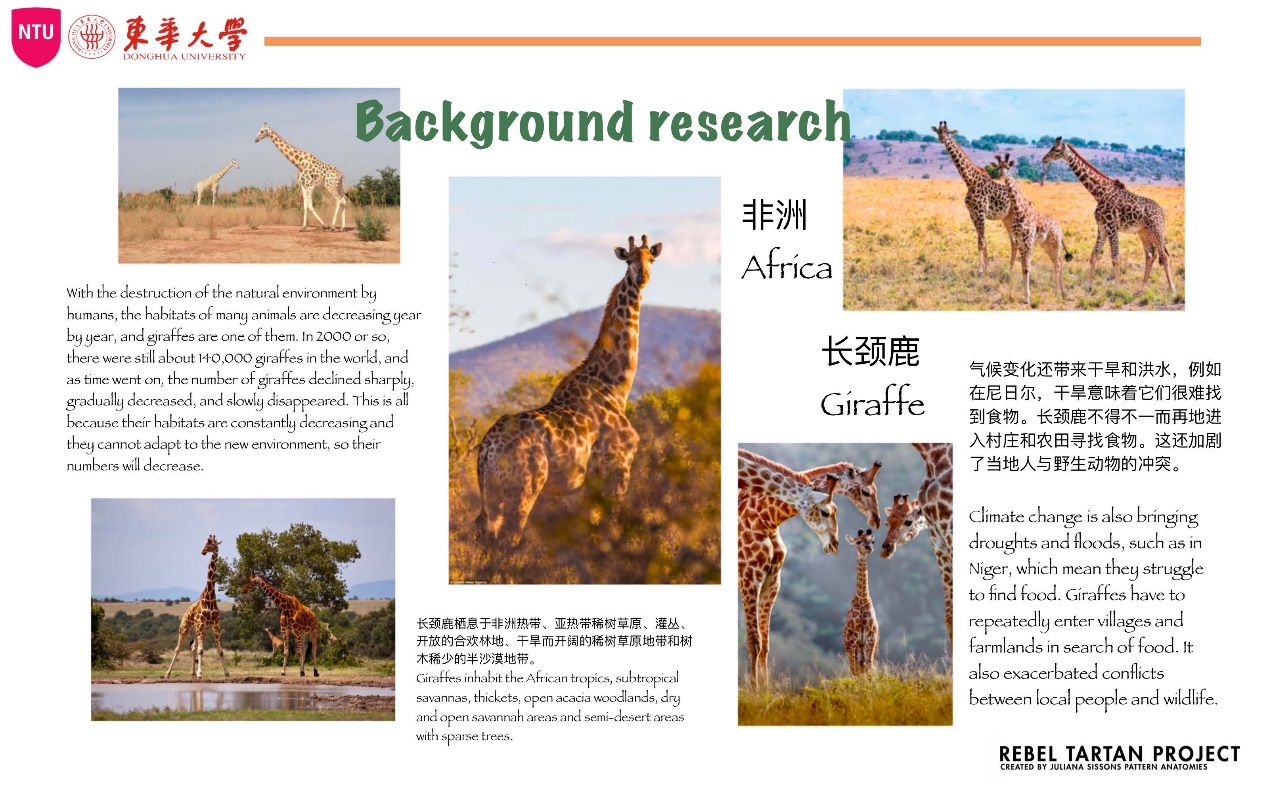 作品理念:呼吁人们保护环境,关注气候变化。基于气候变化下长颈鹿所面对的越来越严重的生存问题,选取了定格长颈鹿的美好回忆这个点,通过作品定格长颈鹿的一些美好瞬间,来呼吁人们保护环境。