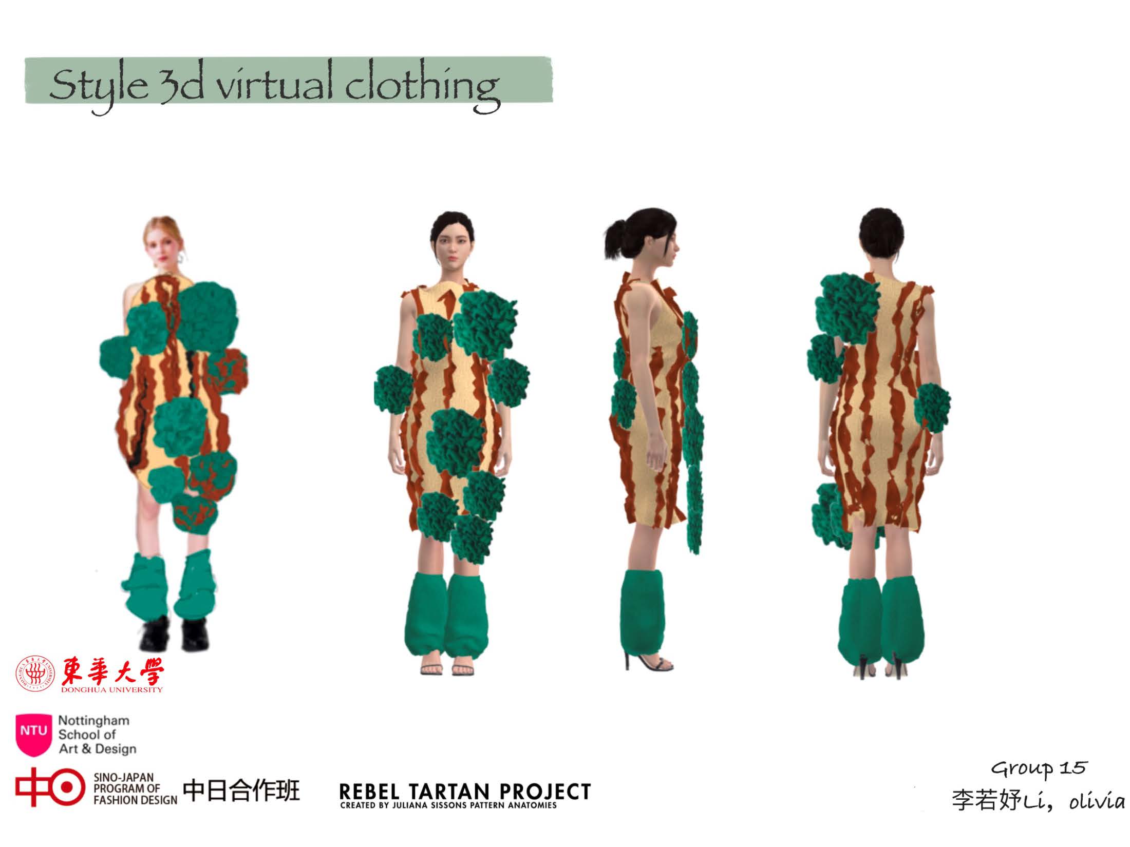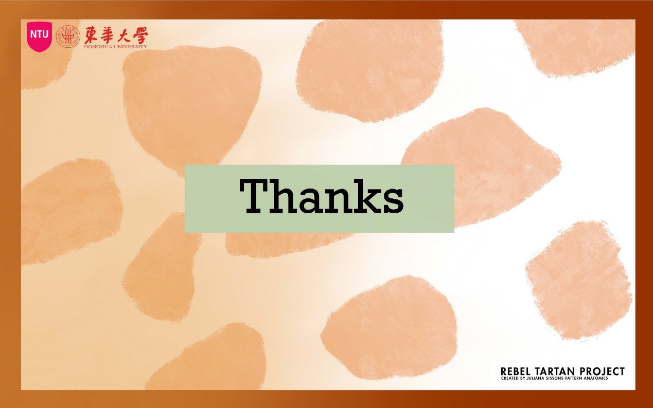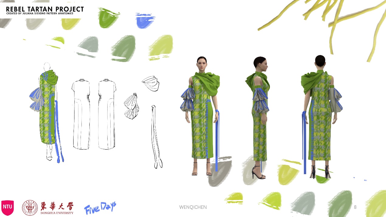 这次与NTU的合作项目课程让大家收获颇丰,我不仅设计完成了个人作品,还根据自己的灵感与想法进行了Rebal Tartan的格纹设计和Style3D的课程学习,让作品更加的丰富并且有了新的展现方式。