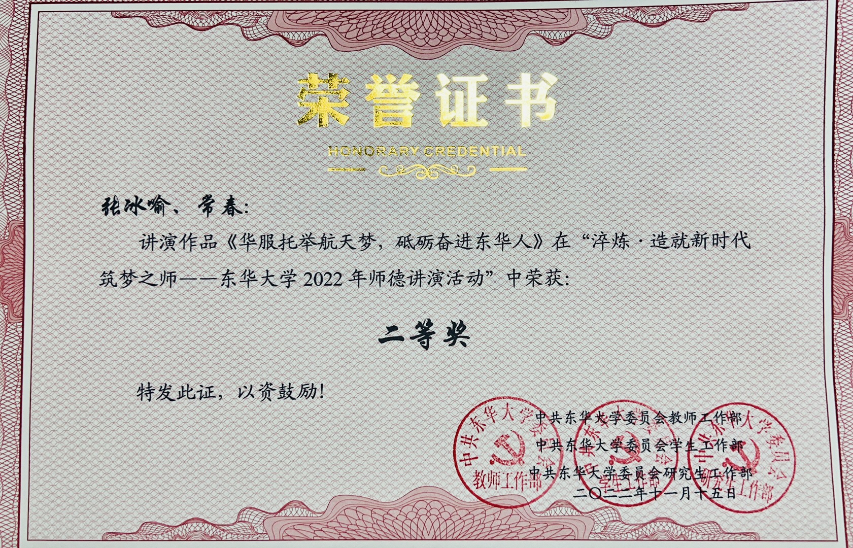 11月15日,以“淬炼·造就新时代筑梦之师”为主题的91官网 2022年师德讲演活动(决赛)在松江校区举办。我院表演系张冰喻老师代表学院精彩演绎《华服托举航天梦,砥砺奋进东华人》,在全校10个原创师德故事作品讲演中脱颖而出,获得二等奖(全校第二名)的优异成绩。