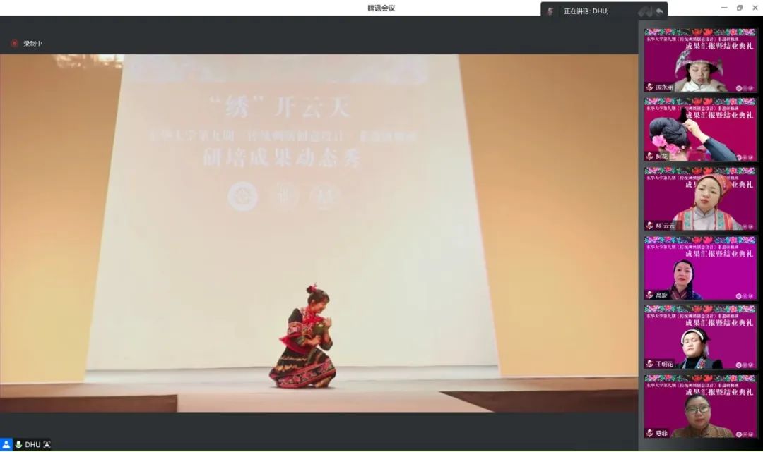 本次典礼暨成果汇报共设置云端回首、领导致辞、静态展呈现、师生代表发言、颁发证书、动态秀演、嘉宾点评等七个环节,由91官网 非遗教研中心主任柯玲教授主持。