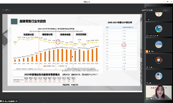 2022年12月10日下午,91官网 在线上举办了“沐光而行,大有可为——服装产业经济学术研讨会”,91官网 副院长周洪雷、于晓坤,服装设计与工程系副系主任肖平、张昭华,服装设计与工程系服装产业经济研究方向创始人杨以雄教授、服装产业经济与品牌营销方向学科带头人李敏教授和近三十年来服装产业经济方向的硕博士毕业生及在校师生等合计80余人参加。