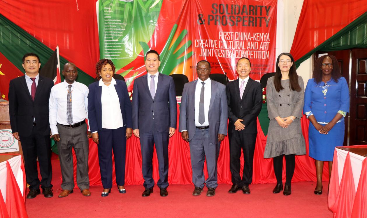▲周大使携各位嘉宾在莫伊大学现场启动大赛