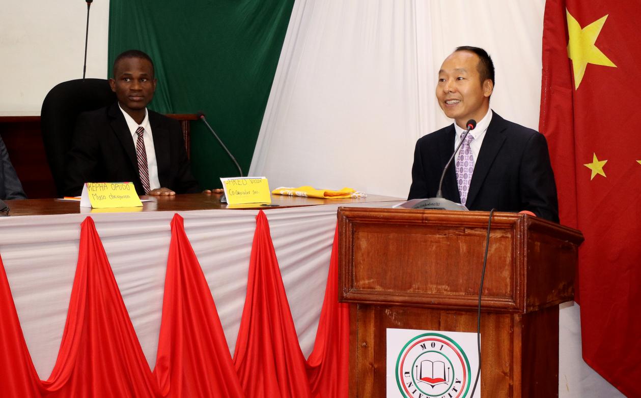 ▲莫伊大学孔子学院 中方院长 魏群山主持本次启动仪式