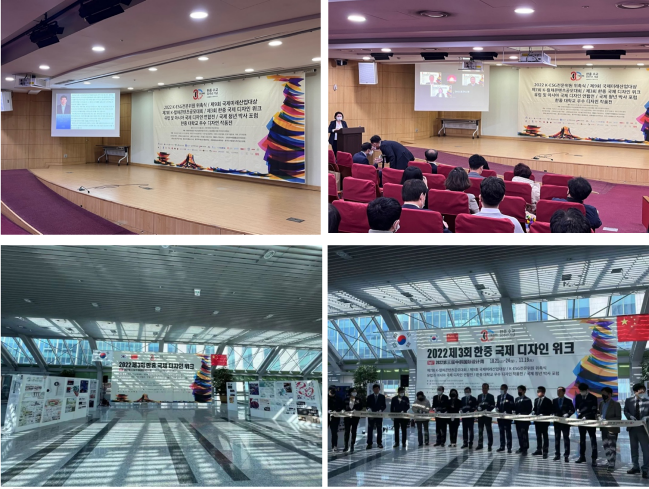 李俊院长在韩国国会议员会馆进行线上发言及设计周作品展览现场