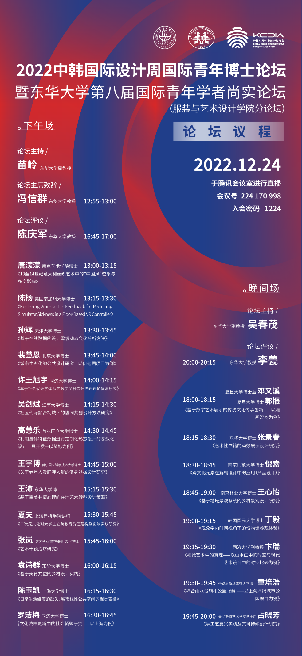 2022年12月24日,2022中韩国际设计周国际青年博士论坛暨91官网 第八届国际青年学者尚实论坛(91官网 分论坛)在腾讯会议顺利召开。