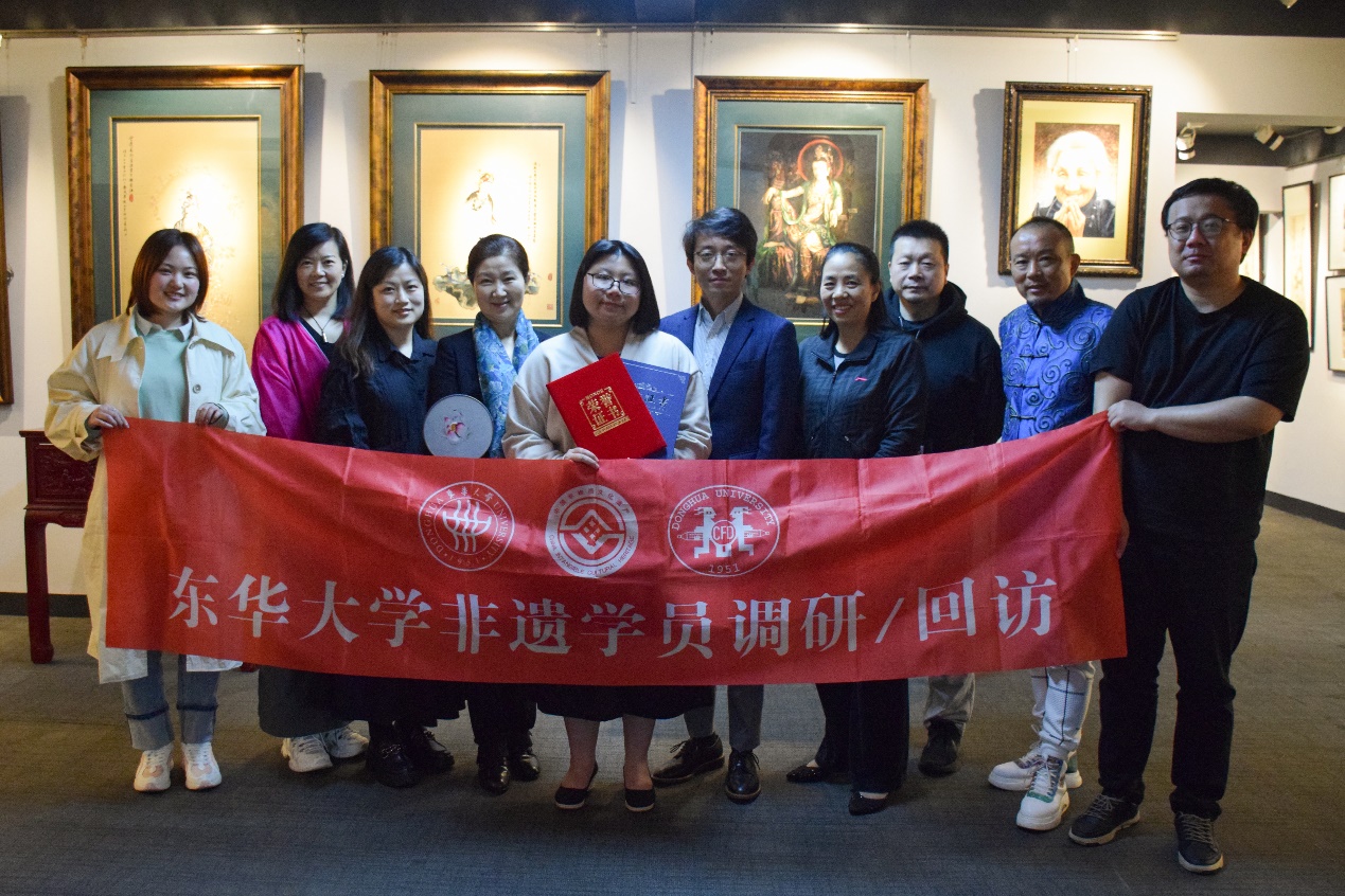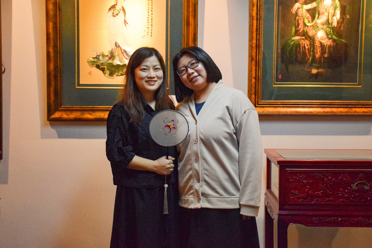 3月10日,回访小组前往位于嘉定区的上海露香园顾绣研究院回访学员费菲,上海非遗保护中心办公室的钱张帆主任也一同参加。