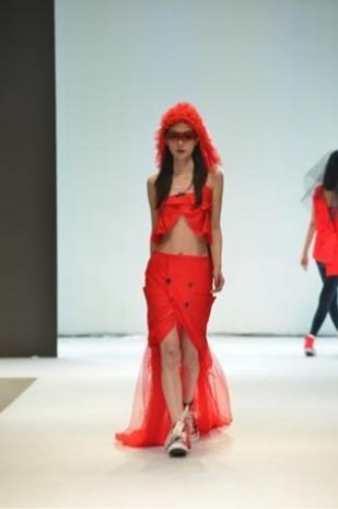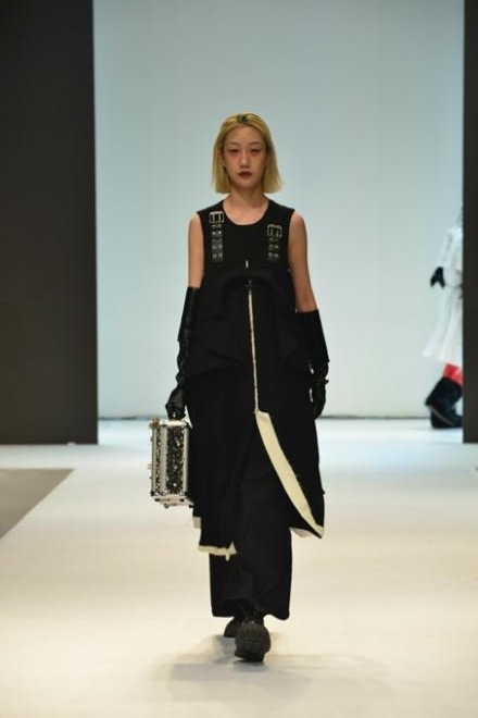 本次展演的作品来自中日合作20级的《自由研究》课程,本次课程是与Theory合作的可持续时尚设计课程。在这次校企合作中,Theory十分尊重和鼓励同学对于“可持续时尚”的自由创作,也表达了品牌对于年轻未来设计师的支持。中日班的师生们充分展现了他们出色的设计能力和精湛的制作技艺。对“旧衣改造”概念的实践,展现了年轻一代对环保和可持续发展的热情和关注。课程团队以两百多件由Theory提供的成衣旧衣为基础,经过一次次地拆解、分析、重构、调整,最终向我们呈现带有Theory品牌印迹,同时强烈反映青年文化态度的服装作品。原本整齐规制的西服套装在同学们的手中被转化为具有全新文化意义的服饰品。