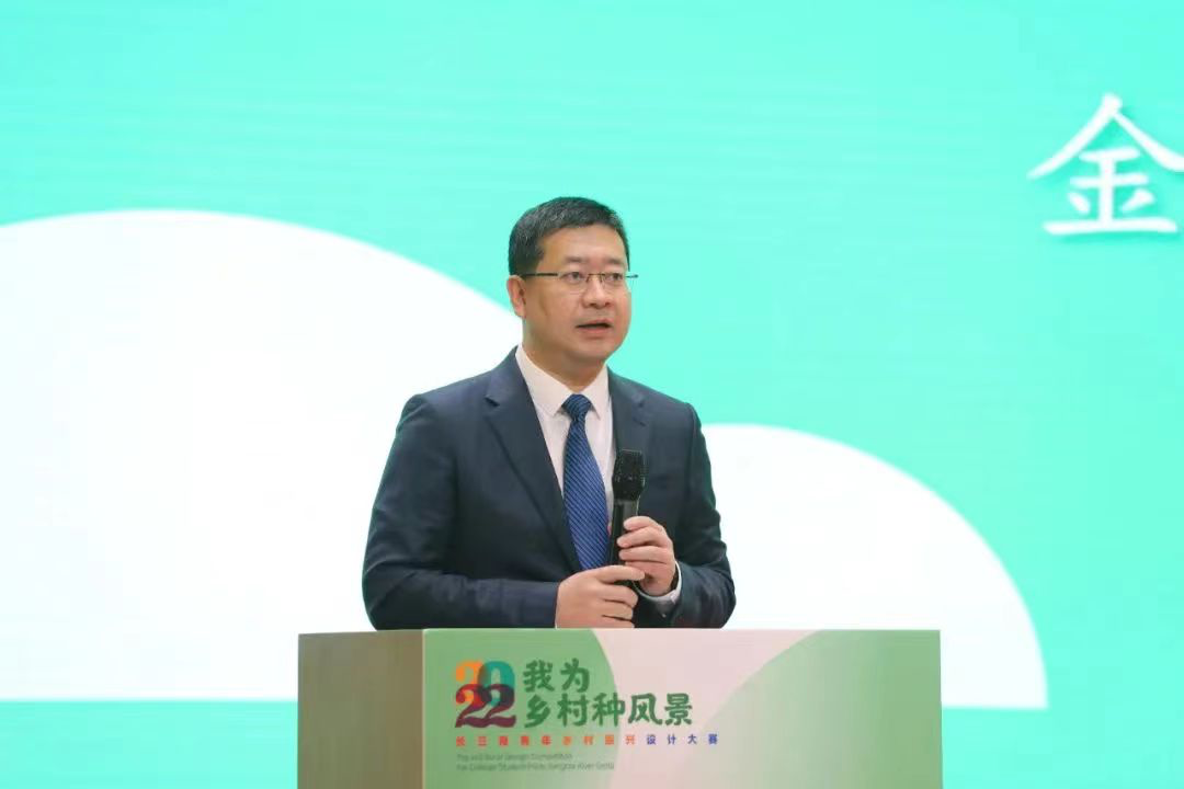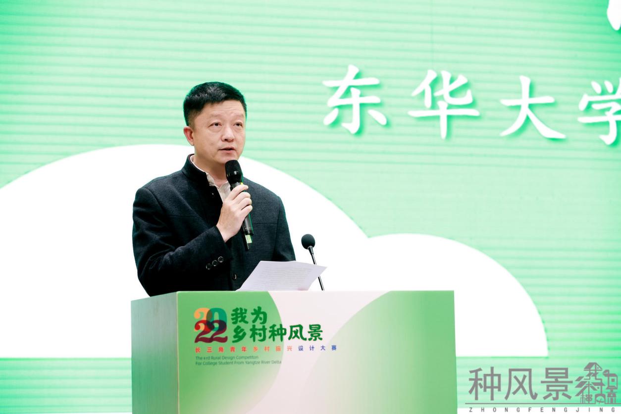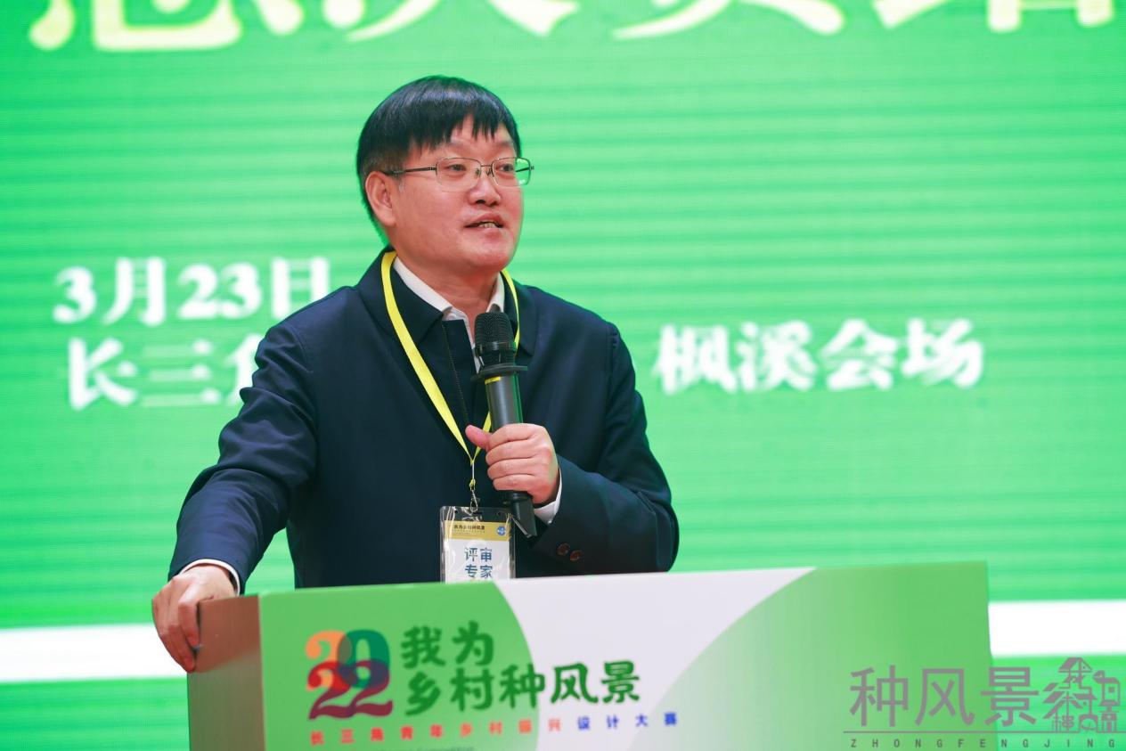 上海市学位办束金龙主任寄语青年学生及设计师们,青春如和煦的阳光普照大地,勇敢将设计图纸描绘在乡村的土地上,并对未来年轻设计师赋能乡村振兴提出期望。