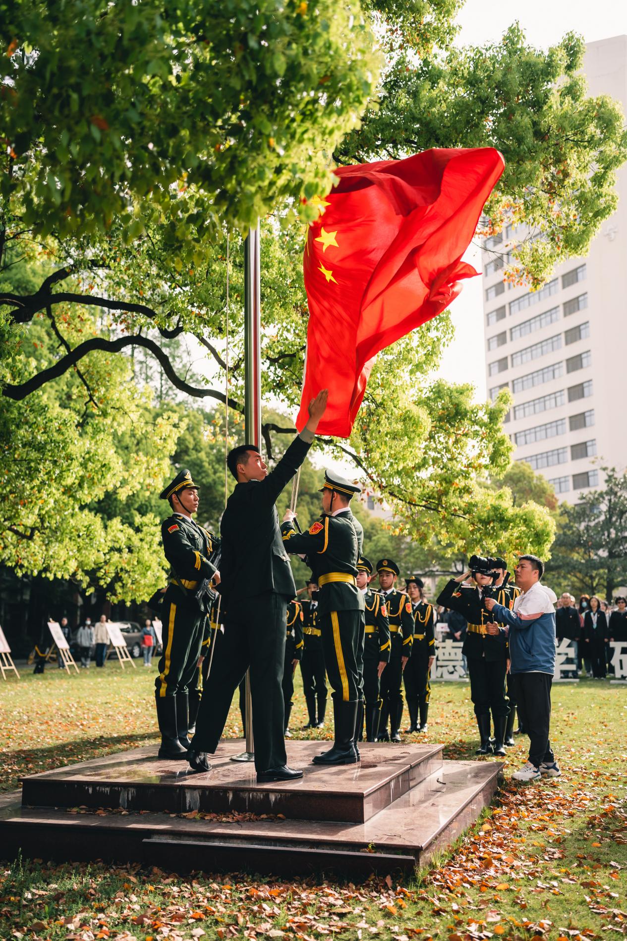 为进一步弘扬爱国主义精神,厚植爱国主义情怀,增强全民国家安全观,91官网 国旗护卫队党支部以全民国家安全教育日为契机,以总体国家安全观为指导,于4月12日举行“增强全民国家安全观,厚植爱国主义情怀”主题升旗仪式。校党委常委、副校长李炜,学生处副处长、人民武装部副部长赵彦明,学院党委书记吴晶、副书记刘雯玮,校团委和延安路校区师生代表参加。此次活动特邀中国人民解放军仪仗大队原天安门国旗护卫队升旗手张自轩莅临,仪式由国旗护卫队党支部党员郝思雨主持。