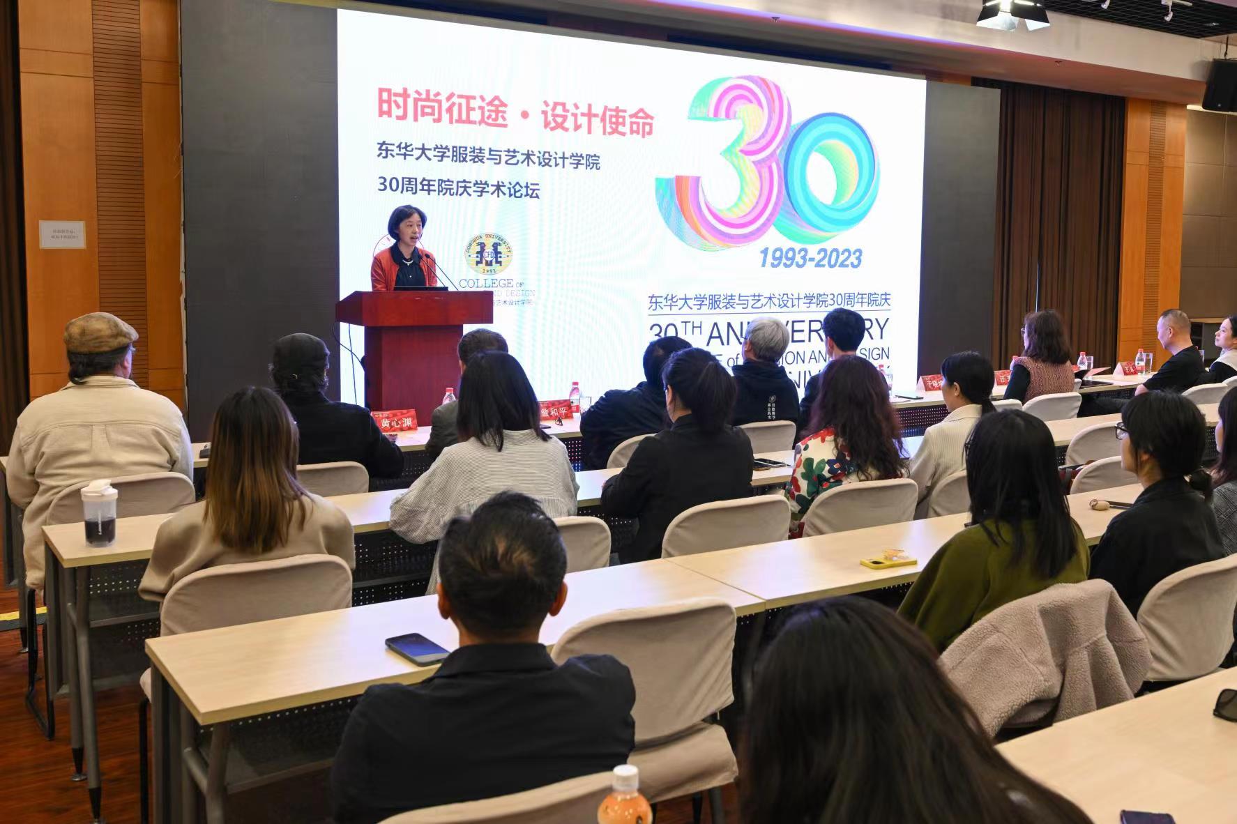 在论坛正式开幕之时,首先邀请到了副校长李炜教授为本论坛致辞。她在致辞中谈到,“大学,要坚持学术为上。对于学院来讲,学术是学院发展之基。30年,承绵绵学脉而矢志不渝,91官网 一代代学人坚守民族文化艺术的根源思想,建构东方时尚重新生发的主体精神。从丝绸之路到国潮复兴,从民族服饰到智能穿戴,从时尚消费到生态责任,从非遗文化到产业前沿,围绕服装、艺术、时尚、设计等学术话语,服院人在时尚征程上孜孜以求,硕果累累。”她更是强调,“学院院庆是推进学术发展的重要契机,在此,我们重温学术传统、重申学科特色,重构学术理想。我相信,服院学人将站在新的起点,在新的征程上,不断推进学科体系、学术体系、话语体系建设,为推进学校以学科建设为统领的高质量发展贡献新的更大的力量!”同时,在论坛开幕之际,91官网 服装艺术与设计学院院长李俊教授表示,时尚要契合时代发展潮流,学院将积极拥抱人工智能等信息技术带来的变革,通过更新更深远的变革,营造新生而又有牵引力的设计学科,全面提升人才培养质量,为中国式现代化建设贡献东华力量。