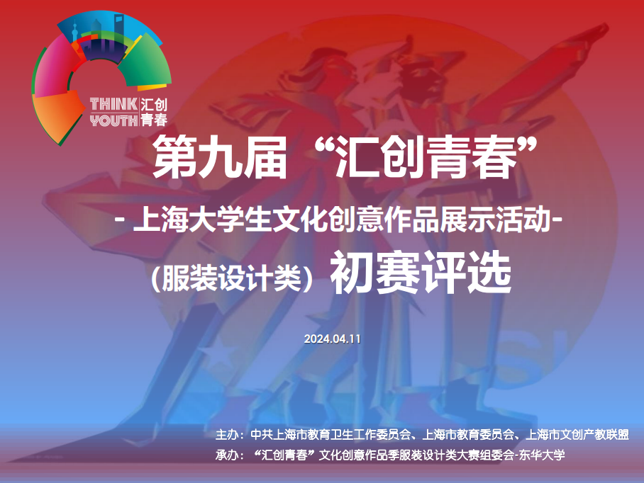 本次创意作品展示活动(服装设计类)从3月6日启动报名投稿形式,截止到4月3日,共计收到来自东华大学、苏州大学、华东师范大学、上海工程技术大学、上海戏剧学院、上海视觉艺术学院、上海商学院、上海电影艺术职业学院、上海东海职业技术学院、上海工艺美术职业学院、上海杉达学院、上海邦德职业技术学院、西南大学共13所高校的有效稿件139份,经专家评审委员会评审,选出了50组入围的作品,入围者需完善当前入围的作品,进入下一阶段评选。决赛评选时间为4月27日,地点为东华大学延安路校区逸夫楼2楼表演厅。