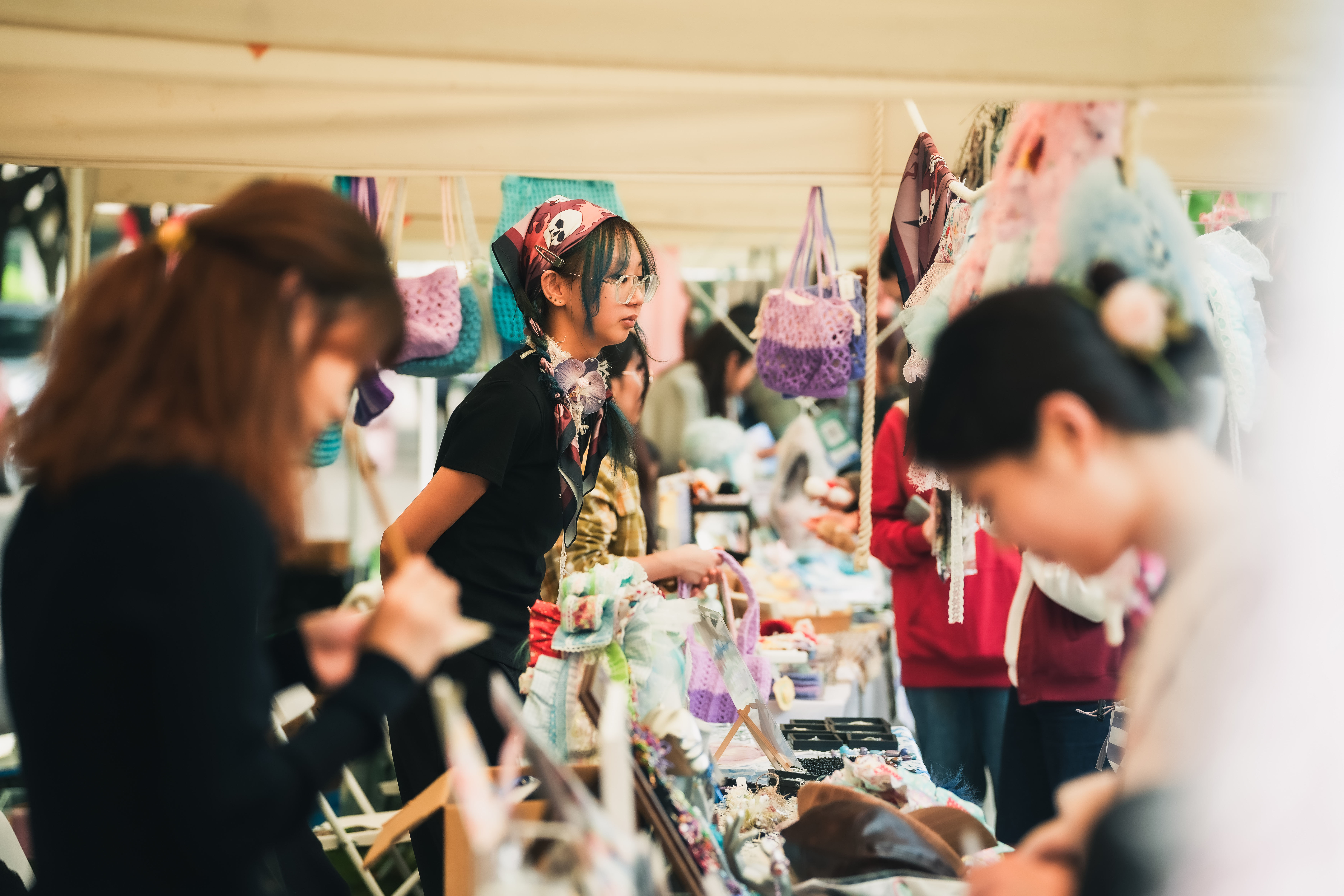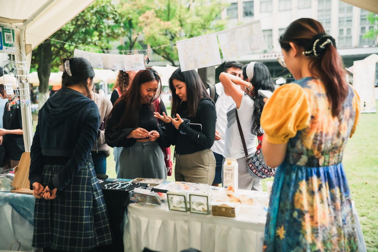 市集聚焦东华青年设计人才服务上海时尚设计之都的使命担当,以青年人的视角为中国设计发声,共吸纳全校两校区学生创意团队、尚创汇青年校友创业孵化品牌、少数民族文创团队、教师公益爱心手工坊“织爱”品牌等73组摊主入驻。