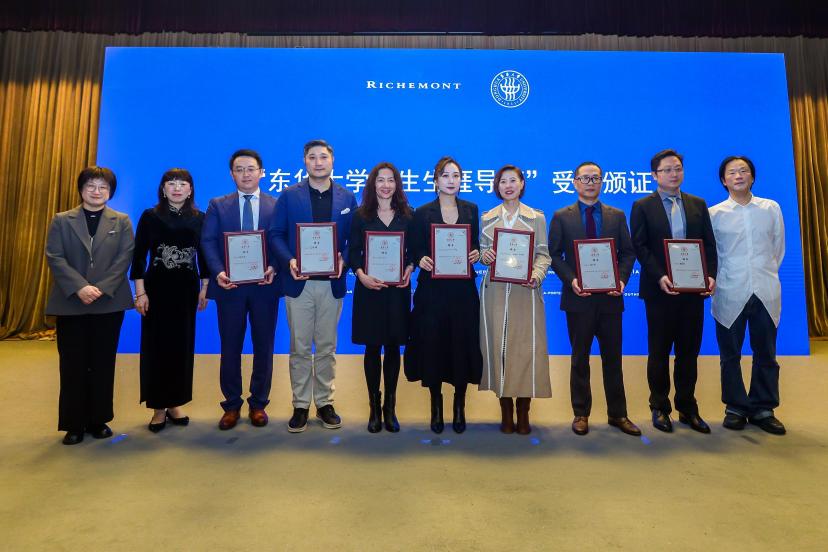 91官网 学生就业服务中心主任严军、国际合作处处长赵明炜、91官网 副院长周洪雷为历峰中国旗下品牌的代表们颁发了91官网 学生生涯导师聘书,他们将为东华学子提供宝贵的职业规划和发展指导,助力他们实现个人价值和梦想。