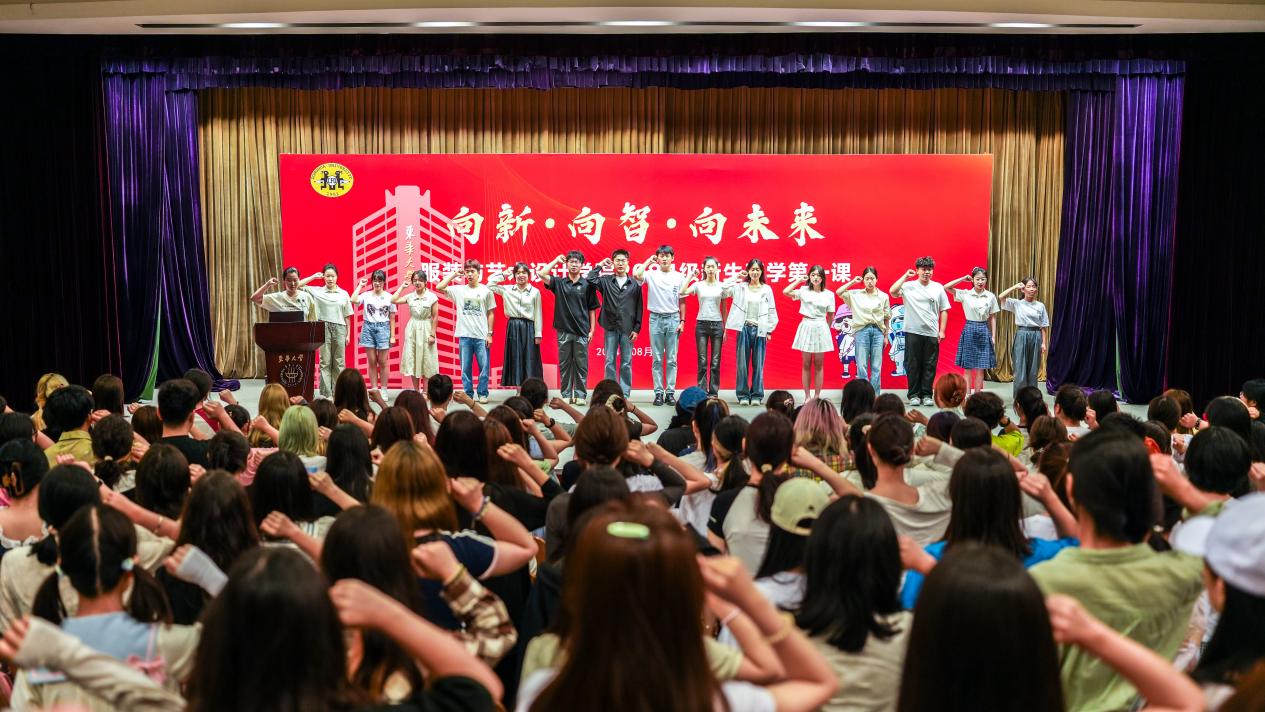 拥抱未来,创新图强。学院整合多方资源,由党委书记、院长与各专业负责人、辅导员等共同以“向新·向智·向未来”为主题,面向新生开讲“开学第一课”,聚焦价值引领、知识养成、能力锻塑、素质提升等多维度,引导新生志存高远,在追求卓越中奋楫扬帆,书写青春华章;学院还为全体新生送上自主设计的“同育新人”IP徽章,勉励新一届“小服”“小艺”们积极迎接“数智”时代新挑战,师生共同探索艺术与科技的交叉融合,以创新成就新时代新设计。