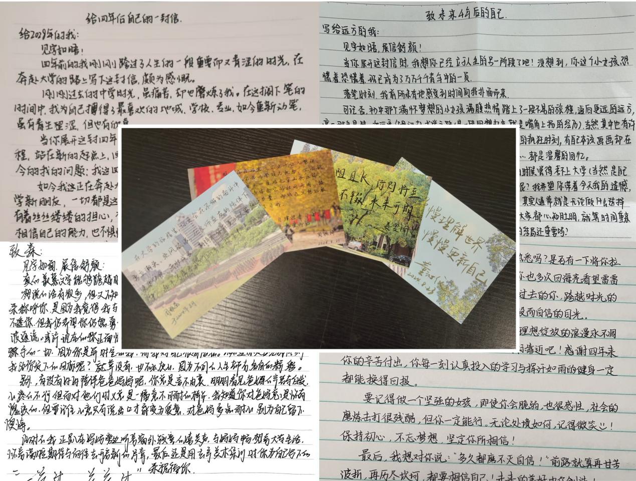 云端相见,共赴新程。暑假里,学院主动前置适应教育,开展新生“云”班会,组织专业负责人、辅导员与新生线上见面,共同围绕大学生活、学涯规划和未来发展等话题展开互动交流;依托新生入学教育系统“学前任务”模块,为新生定制“给四年后的自己写一封信”主题活动,引导新生回顾过往、思考未来,与自己进行一场跨越时空的对话;辅导员们也为新生手写寄语卡片,激励新生当以报国为志向、以学术为志趣,用最暖心的方式带来最具仪式感的入学新体验。