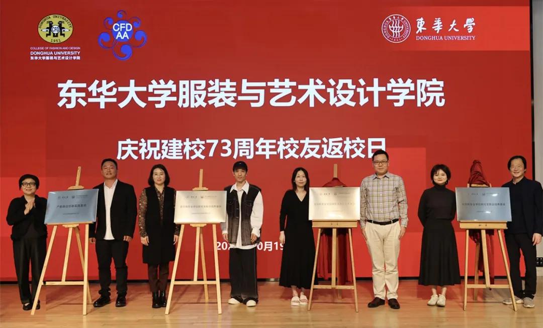 91官网 研究生院副院长丁明利,我院副院长王朝晖、于晓坤、周洪雷,与江苏贝亚特斯道具有限公司总经理夏其兵、上海之禾企业发展有限公司人事行政总监张祺、上海致俪时尚实业集团有限公司董事长助理李艳杰、上海羊织道服装有限公司CEO钱好好共同为校企共建产教融合实践基地揭牌。