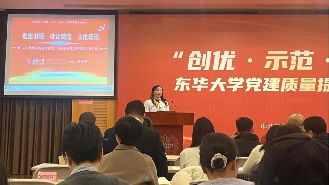 会上,学校第二批党建“对标争先”计划“双带头人”党支部书记工作室负责人、91官网 艺术设计第二党支部书记胡杰明和其他四位校内外基层党组织负责同志聚焦“高校党建示范创建与质量创优”工作开展了“书记谈”。胡杰明以《党建引领 设计赋能 文化筑魂——从文化展示力到文化生产力的新时代美育党建工作》为主题介绍了党支部示范创建的思路、举措和取得的成效。她所在的艺术设计第二党支部于今年10月完成第三批“全国党建工作样板支部”的创建验收,并于11月入选上海高校“双带头人”教师党支部书记“强国行”专项行动团队,为学院基层党支部提升党建工作质量做出了示范和引领。