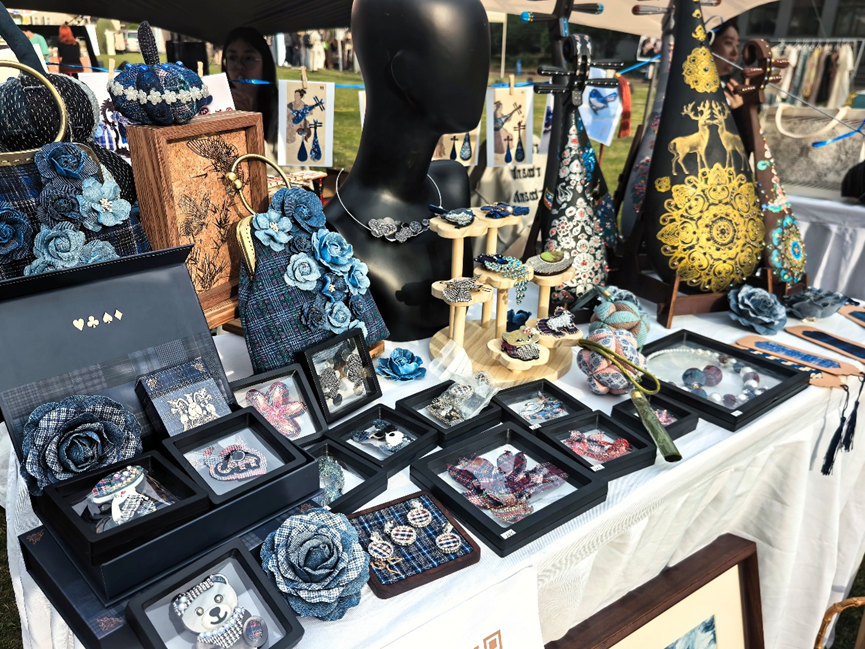 本届市集的服装类摊位尤为丰富与亮眼。其中,兆禾moment——一个以“浪漫少女主义”为核心理念的轻中式服装品牌,诞生于一群年轻人对美好生活的灵感碰撞,吸引了众多观众的目光。在东华大学尚创汇孵化平台的大力支持下,“兆禾moment”带着全新的春日系列作品亮相创意市集,通过现场试穿、即兴摄影等互动形式,与消费者建立温暖的情感连接,彰显着一群年轻人用创意与热爱诠释诗意栖居的温暖实践。