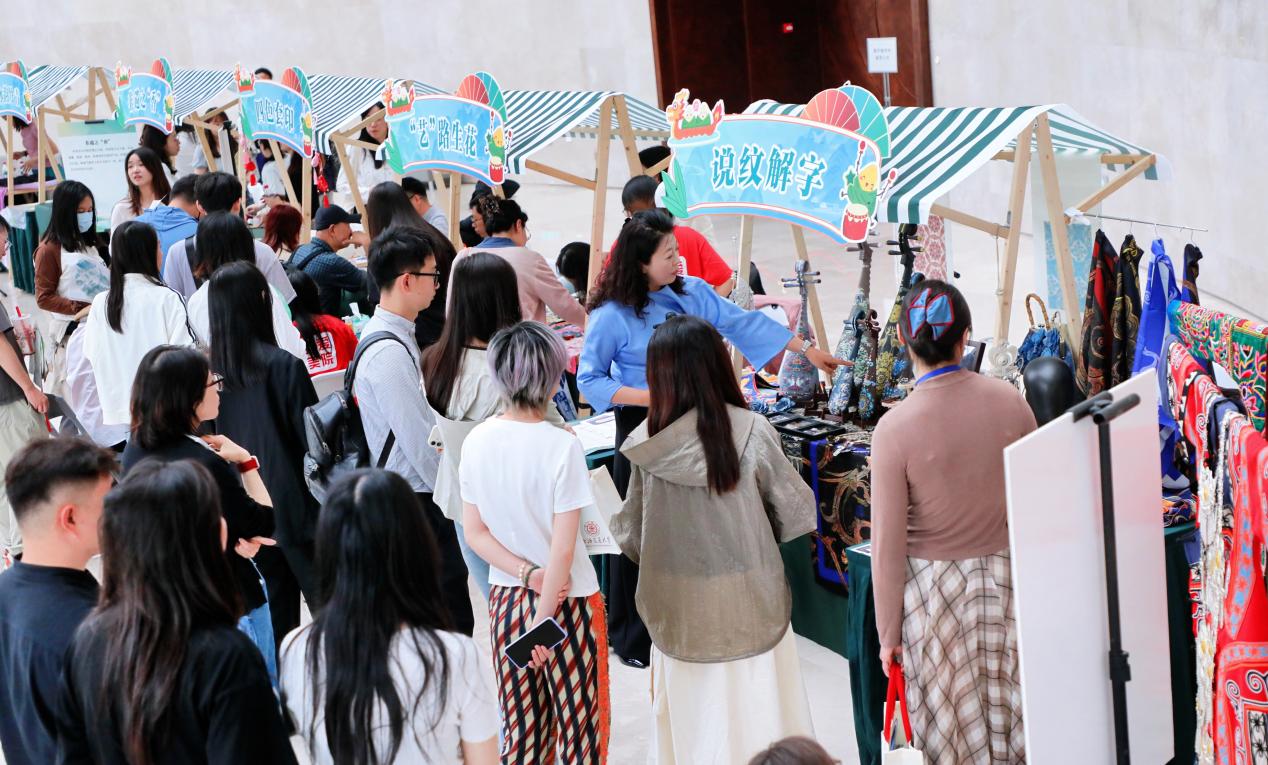 我校服装与艺术设计学院文化遗产创新中心团队应邀参加此次活动,活动集非遗展示、传承、文创以及互动、宣教为一体,设置非遗展演、非遗市集、非遗讲堂等众多板块。其中,非遗展演成为本次活动的焦点,展出了多所高校师生以非遗元素为灵感设计的文创产品。我校非遗团队带来的中国传统服饰非遗文化展演,因其“可观可赏、可穿可戴、可学可享”受到广泛关注,引发热烈反响。
