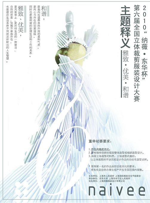 2010“纳薇•东华杯”第六届全国立体裁剪服装造型设计大赛征稿函