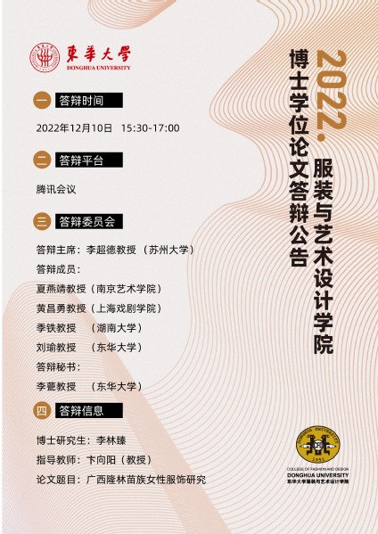 服装与艺术设计学院2022年博士研究生学位论文答辩公告